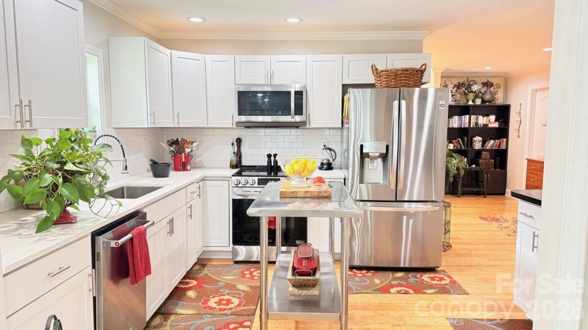 Welcome to this beautifully updated open floor plan 4-bedroom, 2-bathroom home on a spacious 0.31-acre fenced corner lot with plenty of parking, conveniently located to uptown amenities and schools! Step into the 14' x 15' primary suite, complete with a brand-new bathroom, a walk-in closet, and gorgeous oak hardwood floors. The other 3 bedrooms are 13X12, 12X13, 11.6X12 with spacious closets and one has custom built in bookshelves which could be an office (already has high speed fiber with Ripple). The bright, open kitchen has been fully updated with modern cabinetry, quartz countertops, and stainless steel appliances and island — perfect for cooking, gathering, and entertaining. Recent improvements include a new architectural shingle roof (2024) with 5 inch gutters, upgraded crown molding, 5.5-inch upgraded baseboards, solid interior doors, energy-efficient LED lighting, ceiling fans, and updated electric 125 AMP panel box and plumbing. A 28' x 33' detached building with a new electrical 100 AMP sub-panel and an attic fan provides endless options — garage, workshop, or hobby space. With its modern finishes, flexible floor plan, and move-in-ready condition, this home offers the perfect blend of comfort, style, and functionality. Flooring has been replaced with Bruce 3.25 inch hardwoods instead of bamboo flooring