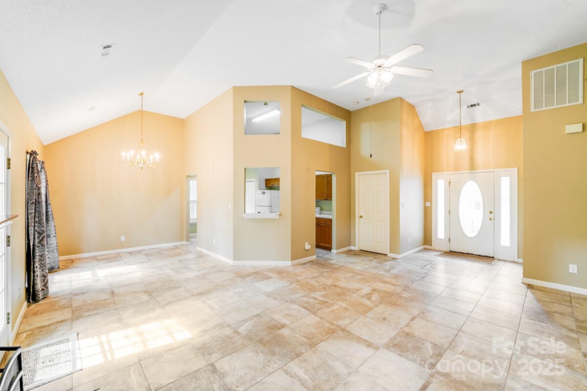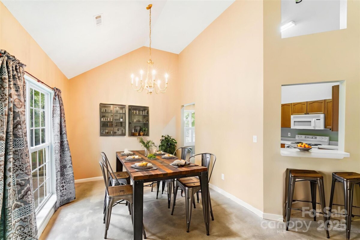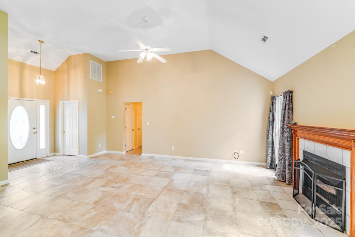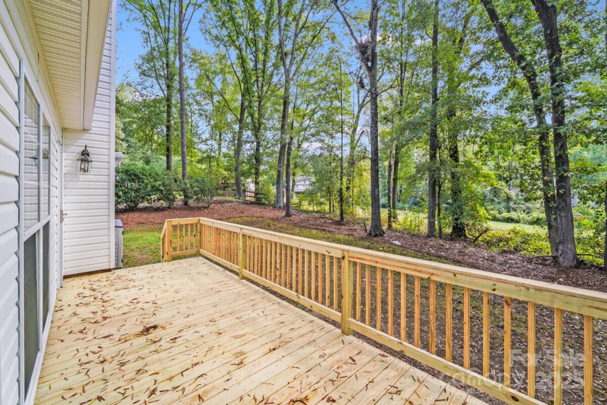 Welcome to this inviting 3-bed, 2-bath home in Cornelius, NC. The spacious living room features soaring vaulted ceilings, a cozy fireplace, and large windows with sunlight beaming inside, creating a warm and welcoming atmosphere. The kitchen offers an abundance of cabinetry and storage, making it perfect for everyday living and entertaining. The primary suite is a true retreat, complete with a walk-in closet and a private ensuite showcasing a dual vanity for added convenience. Secondary bedrooms provide flexibility. Step outside to enjoy the huge backyard with a large deck overlooking mature trees—ideal for cookouts, gatherings, or simply relaxing in your private outdoor oasis. Located just minutes from Lake Norman, Birkdale Village, shopping, dining, and easy access to I-77, this home offers the perfect balance of comfort and convenience. Don’t miss the opportunity to make this beautiful property your new home! Recent updates include roof replacement in 2025, deck built in 2025.
