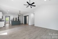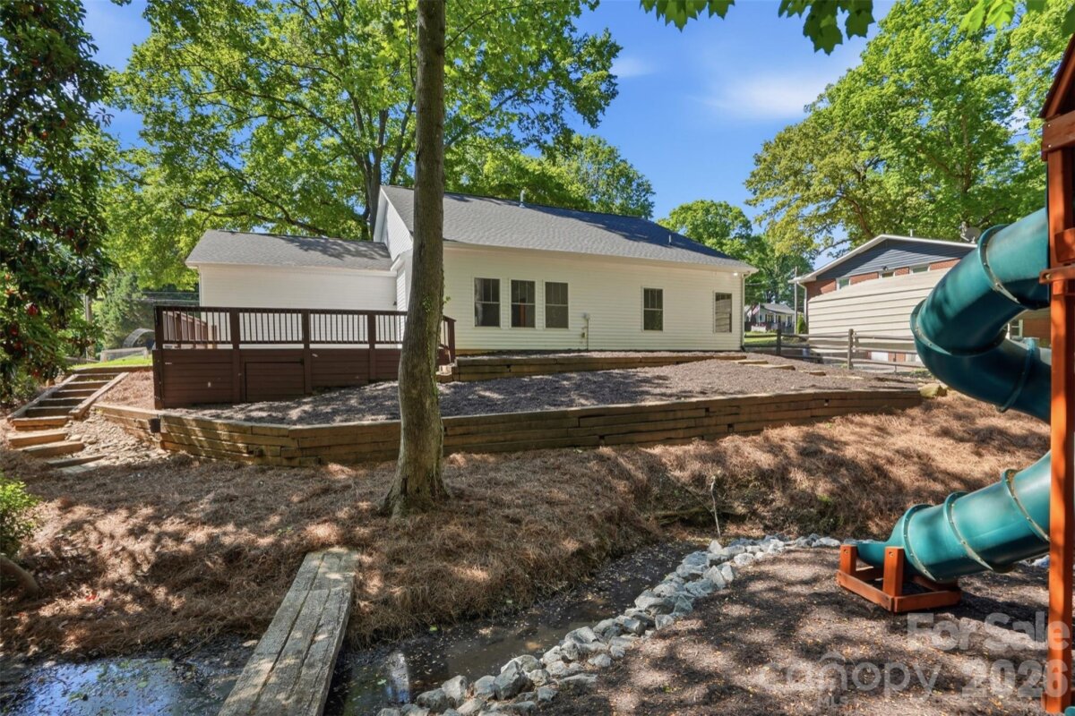 Step into contemporary comfort with this stunning 2022 newer-build nestled in the heart of Kannapolis. From the moment you arrive, the updated curb appeal captures your attention, featuring stylish vertical vinyl siding and a cozy front porch—complete with a swing perfect for southern afternoons. The property boasts a large flat driveway leading to a 2-car attached garage, providing ample parking and storage. The interior features durable vinyl flooring and a fresh, updated color scheme accented by striking green interior doors. The Gourmet Kitchen: The heart of the home showcases a large island with green shiplap detailing, sleek granite countertops, and a huge walk-in pantry tucked behind a trendy sliding barn door. Living & Utility: Enjoy the airy feel of the vaulted ceiling in the great room and a generously sized laundry area. The Primary Retreat: Relax in a spacious suite featuring two walk-in closets and a luxurious bathroom with an extra-large walk-in shower featuring a custom pebble liner. The yard is designed for both relaxation and adventure. Fenced around most of the front, side, and back, the property includes a dedicated garden area. Follow the path to your own charming creek, where terracing ensures the land on the other side is fully usable for additional yard space. After exploring, unwind on the extended, extra-large deck overlooking your private wooded backdrop. Experience the vibrant energy of downtown Kannapolis, just minutes away! Catch a game at the Atrium Health Ballpark, home of the Cannon Ballers minor league team. Walk to charming local shops, restaurants, and Village Park, which features a splash pad, carousel, playground, and the Rotary Express train. Located just 1.5 miles from I-85, offering an easy commute to Charlotte and the surrounding Triad. This home blends "new-home" peace of mind with a unique, custom personality.