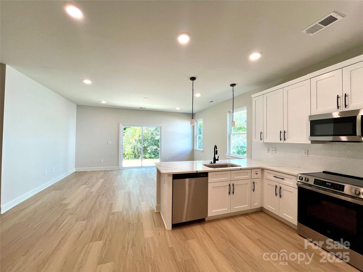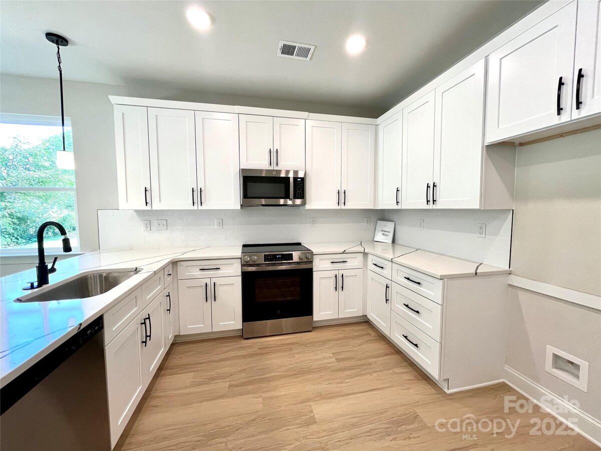 Come see this beautiful ranch style home with a hard to find two car garage in Gastonia, NC! This entire street has been developed and offers a lot to any buyer! Inside you'll find four nice sized bedrooms, two full bathrooms with black and white tile accents, LVP flooring, and a wonderful white shaker cabinet kitchen with gorgeous quartz countertops. This house - and neighborhood - has so much to offer! All you'll have to do is sign and move in! Comes with a new construction warranty for peace of mind and seller credits to help any situation!