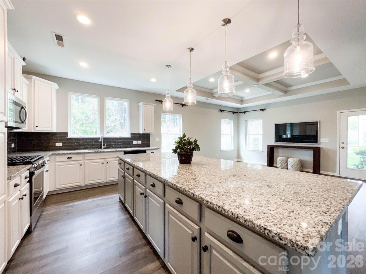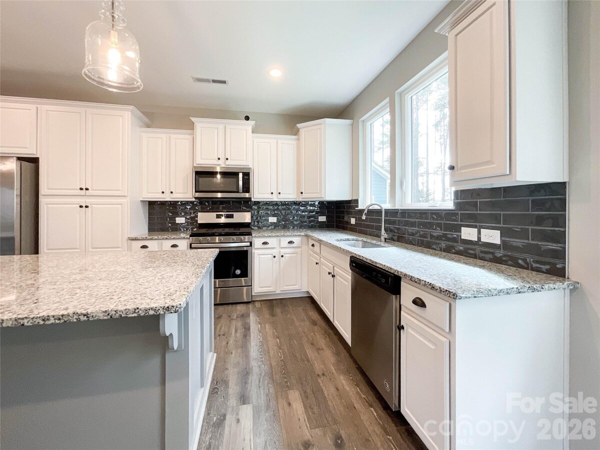 This beautifully maintained 3-bedroom, 3-bath home offers 1,632 square feet of comfortable living space in the desirable Edgewater community. Purchased in 2019 and never lived in, the home was originally used as a True Homes model and sales office. The former office has been fully converted into a practical 2-car garage, creating a move-in-ready residence in pristine condition. Inside, you’ll find all the upgrades you'd expect in a model home that really sets this home apart: Upgraded gas range, stylish tile backsplash, premium 12mm wood laminate flooring, main bathroom featuring dual vanities and an upgraded 5’ shower, pre-installed home security system and many others (see all upgrades in documents) The open floor plan provides a bright, welcoming feel ideal for both daily living and entertaining. Each bedroom offers ample space and privacy, while the three full bathrooms ensure convenience for family and guests. Great lot location: Nothing will be built directly in front (community green area) of or behind this property. Residents enjoy exceptional Edgewater community (2024 Community of the Year) features including: Clubhouse with frequent events such as food trucks, yoga, tennis, and social gatherings Access to nationally ranked 18 hole golf-course Access to Pickleball Courts and Pickleball Center Brickwood restaurant and brand new clubhouse Resort-style swimming pool Lakeside pavilion Kayak launch access on the Catawba River Scenic walking and nature trails Located in Lancaster County just outside Charlotte, this home combines new-construction quality with thoughtful upgrades and low-maintenance living. Whether you’re looking for a primary residence or an excellent investment property, 21228 Sanctuary Drive is a rare opportunity to own a nearly brand-new home in a premier lakeside community.