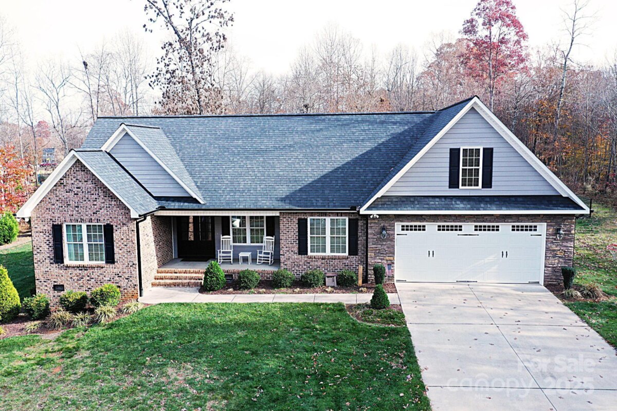 This charming 3Bed/2Bath home is move-in ready and situated on nearly an acre in a peaceful subdivision just off Hwy 16. While conveniently close to major interstates, it offers a serene, rural atmosphere. The property boasts excellent curb appeal, welcoming you from the moment you arrive. Upon entering through the covered front porch, you are greeted by a spacious living room featuring coffered ceiling and a gas fireplace. The lovely kitchen is equipped with custom cabinetry, stainless steel appliances, and granite countertops, and breakfast bar, making it a delightful space for cooking and entertaining. Adjacent to the kitchen is a formal dining room, ideal for hosting guests. The extraordinary primary bedroom, located on the main level, includes an expansive walk-in closet and a luxurious bathroom with separate vanities, a makeup counter, a water closet, and a stunning walk-in shower. Upstairs, the home offers versatile space with a large bonus room. The level, fenced-in backyard is perfect for outdoor activities and includes a storage building, firepit, treehouse, and added privacy from the surrounding woods, along with an additional lot for extra space. This home is a must-see!
