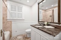 Timeless Elegance Meets Modern Comfort in the Heart of Dilworth. Nestled along prestigious Dilworth Road East, this exceptional residence seamlessly blends classic charm with contemporary sophistication. Offering approximately 4,500 square feet of living space, the home features six bedrooms, four full bathrooms, and a versatile main-floor office with easy access to a nearby full bath—perfect for use as a guest suite or the sixth bedroom. An inviting wraparound rocking-chair front porch sets the tone for the refined details found throughout. Inside, the open-concept main level is designed for effortless entertaining, anchored by a chef’s kitchen equipped with a Wolf cooktop, stainless steel appliances, double ovens, and an oversized quartz island. The kitchen flows gracefully into a sun-drenched sitting room and extends to a rear patio overlooking a tranquil backyard framed by brick walls and lush landscaping—an intimate retreat for quiet moments or lively gatherings. Elegant moldings, rich hardwood floors, and two fireplaces—one in the living room and another shared between the family room and kitchen—create a warm and inviting atmosphere. The spacious owner’s retreat is a true sanctuary, featuring a cozy fireplace, spa-like en-suite bath, and a generous walk-in closet. Upstairs, a full bar and entertainment area provide the perfect setting for hosting guests or enjoying relaxing evenings at home. This home offers a rare blend of historic character and modern amenities, all just moments from Dilworth’s premier shops, restaurants, parks, and minutes to Uptown and SouthPark.