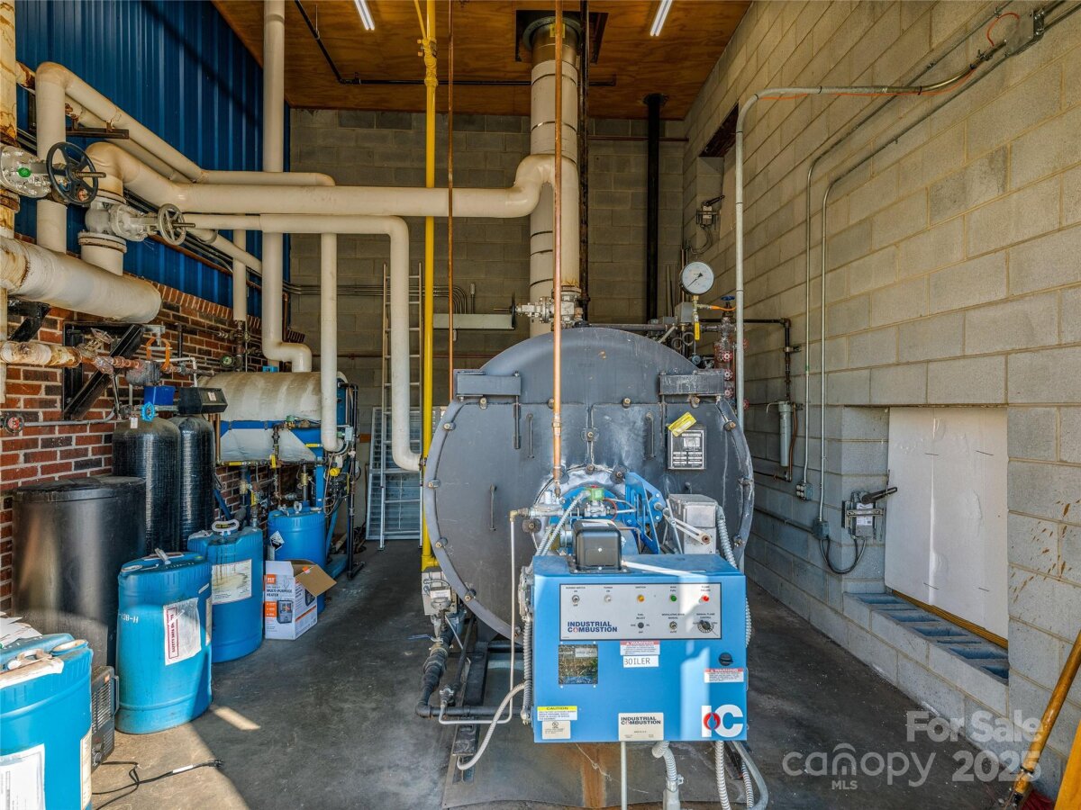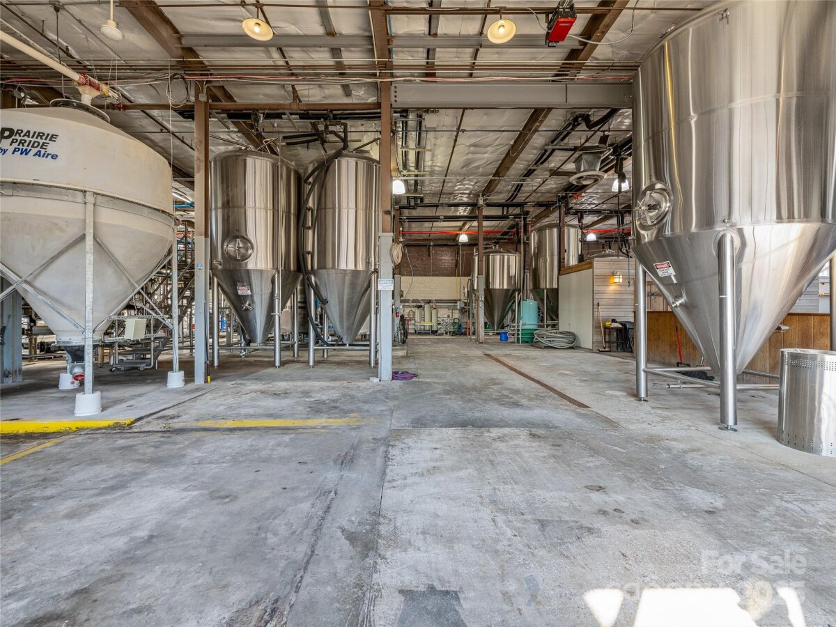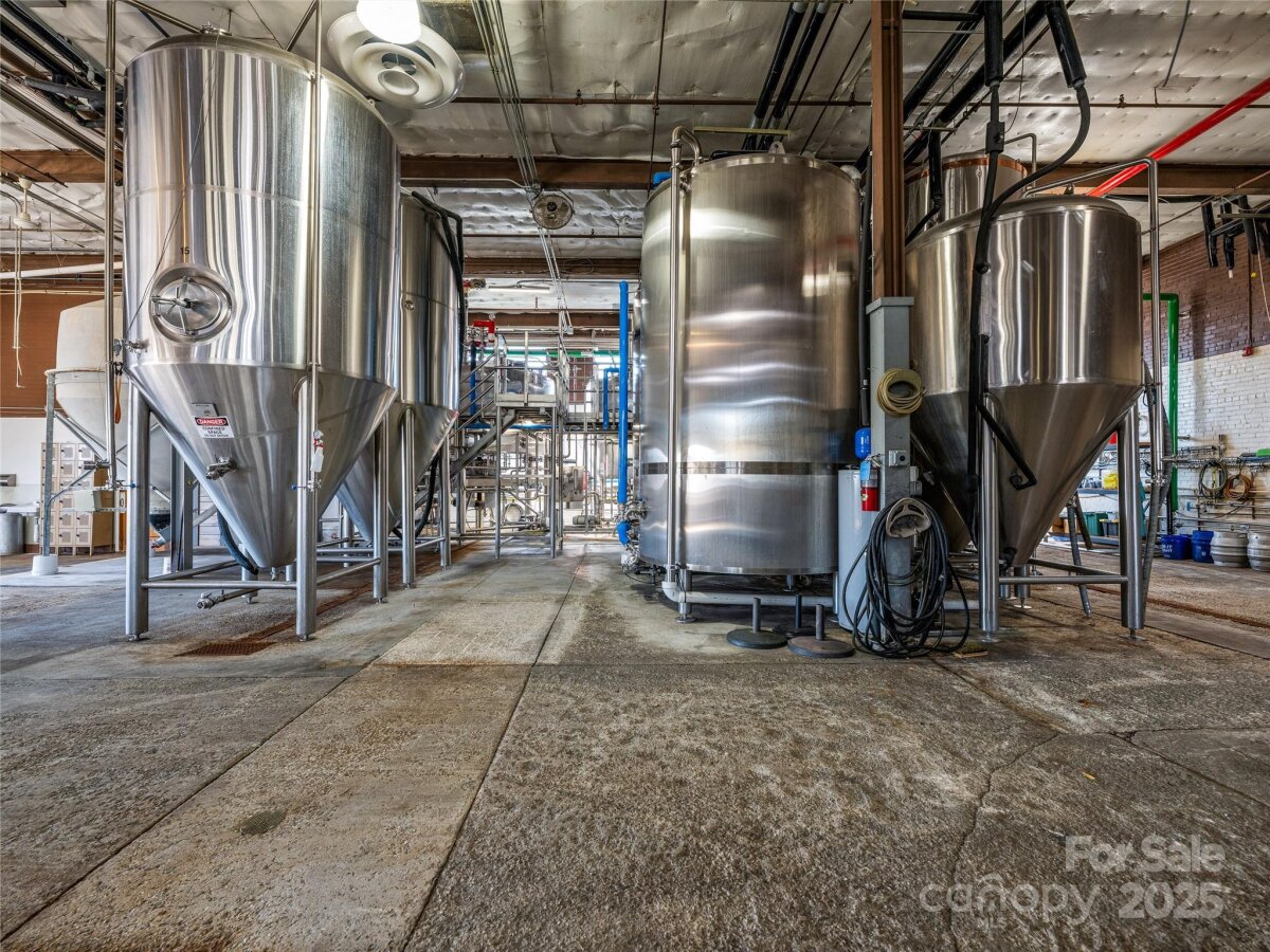 Prominent location and the chance to own a whole corner. Brewery opportunity for sale on five parcels totaling approximately 0.72 acres, zoned CBD in downtown Morganton, NC. This fully upfitted warehouse features a 30-barrel brewing system, tap room, and canning line, ready for immediate operation. Amenities include two restrooms with ADA-compliant stalls, 17' clear ceiling height (18' to insulation), a 17'×14' dock door, a 9'×9' dock door, a 7'×7' cooler, and four roof-mounted ethylene glycol chillers. Interior column spacing of 20' across by 22' deep (with some areas as close as 10') allows flexible production and storage layouts. The fully sprinklered building can accommodate up to 170 chairs or 110 tables and chairs — ideal for production, tap-room events, or future expansion. The property offers excellent regional access, just 1.8 miles from Exit 103 of I-40 in Morganton.