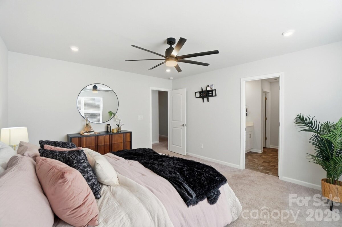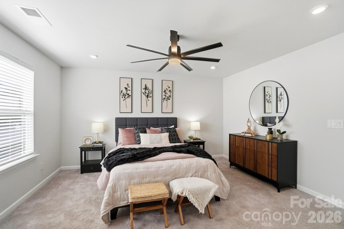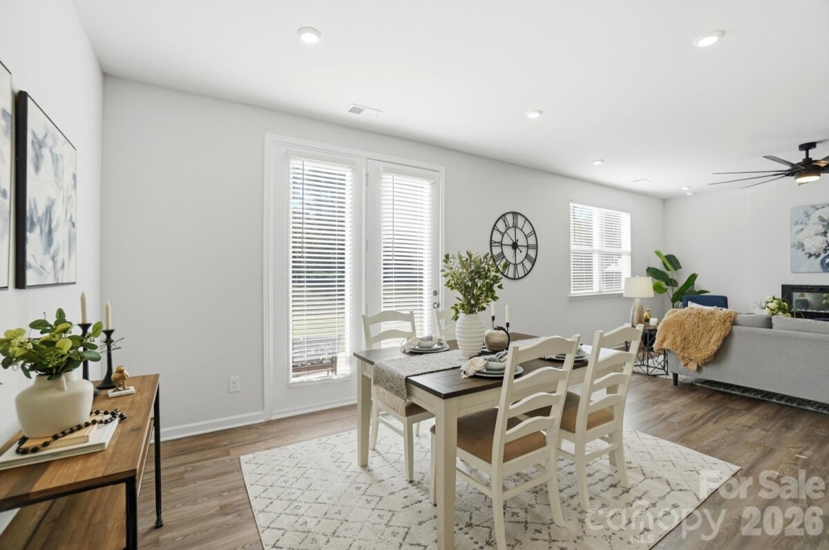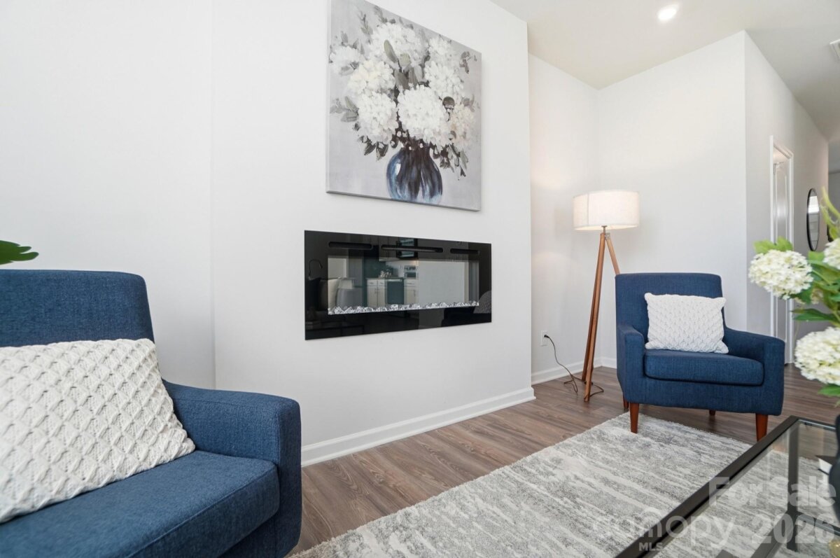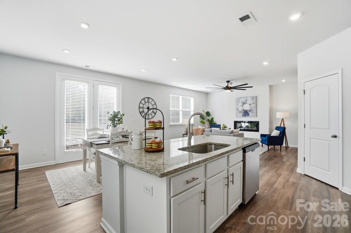 Welcome to this nearly new home with $11K+ IN MOVE-IN READY UPGRADES INCLUDED: REFRIGERATOR, WASHER/DRYER, WINDOW BLINDS, CEILING FANS, MOTION SENSOR LIGHTS, WI-FI LIGHT SWITCHES & SECURITY SYSTEM. All in the sought-after Blue Sky Meadows community, where modern style meets the warmth of home. Just two years young, this beautiful home feels fresh, bright, and MOVE-IN READY. The rare four-bedroom version of the Kephart floor plan offers plenty of room to grow and live comfortably, with thoughtful touches throughout. Ideally located just minutes from the Highway 74 Expressway, it offers easy access to Uptown Charlotte—perfect for a quick commute or a night out in the city. Step inside and you’ll immediately notice the open, airy layout with wide hallways and 9-foot ceilings. The heart of the home is the bright, inviting kitchen, featuring white shaker cabinets, stainless steel appliances, quartz countertops, and an oversized island that’s perfect for family gatherings or casual entertaining. Durable LVP flooring flows seamlessly through the main living areas. Upstairs, you’ll find four spacious bedrooms, two full baths, and a convenient laundry room—all designed to make daily life easy. Outside, enjoy a large, tree-lined flat backyard, offering privacy and a peaceful setting for play or relaxation. Smart home features with cameras & thermostat bring the ease of technology. Blue Sky Meadows residents love the community’s resort-style amenities, including a sparkling pool, cabana, walking trails, playground, dog park, and pavilion. With its ideal layout, modern finishes, and welcoming neighborhood vibe, this home has everything you’ve been hoping to find—and more.