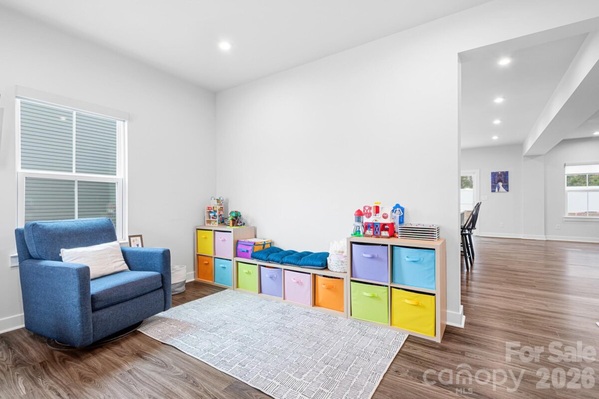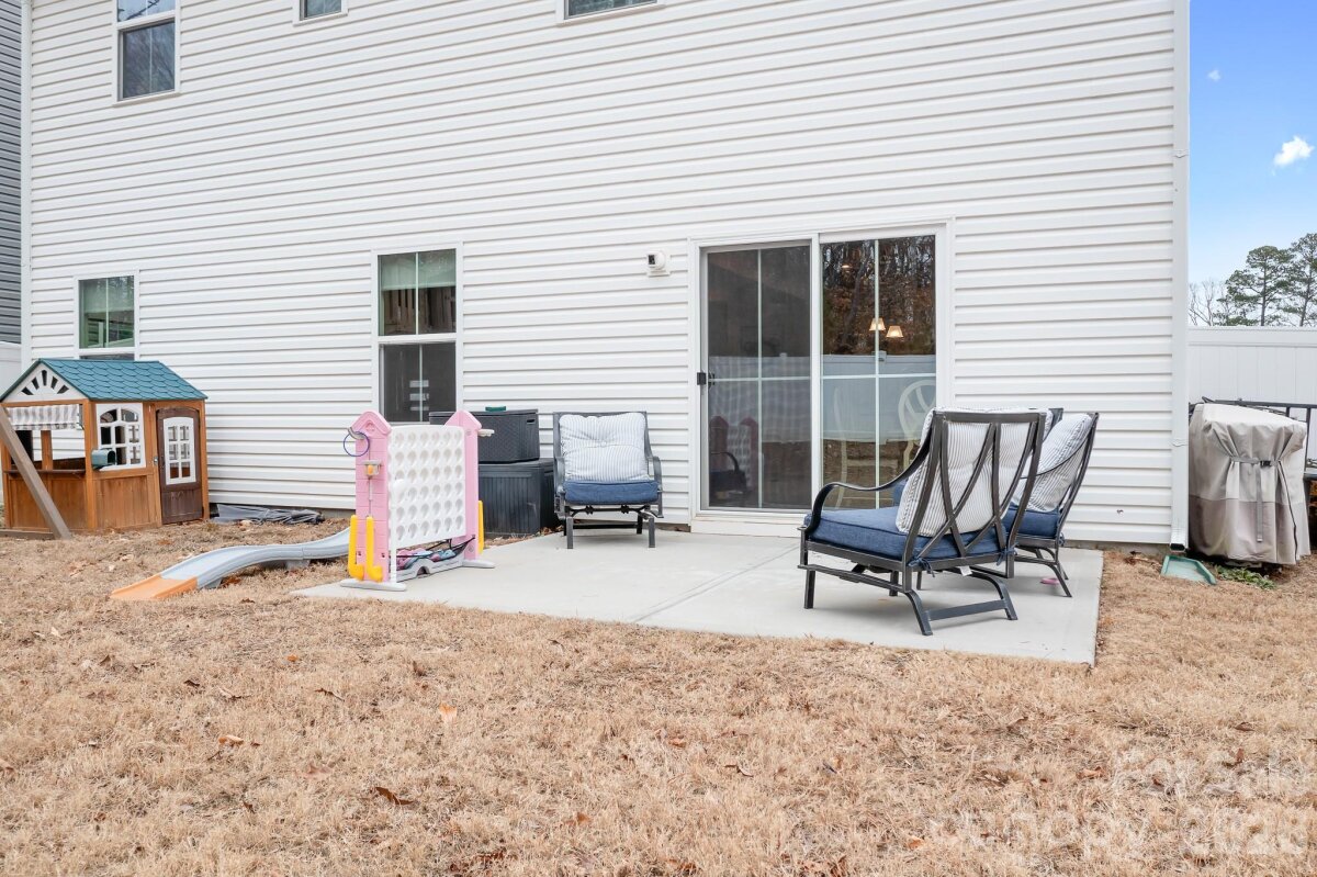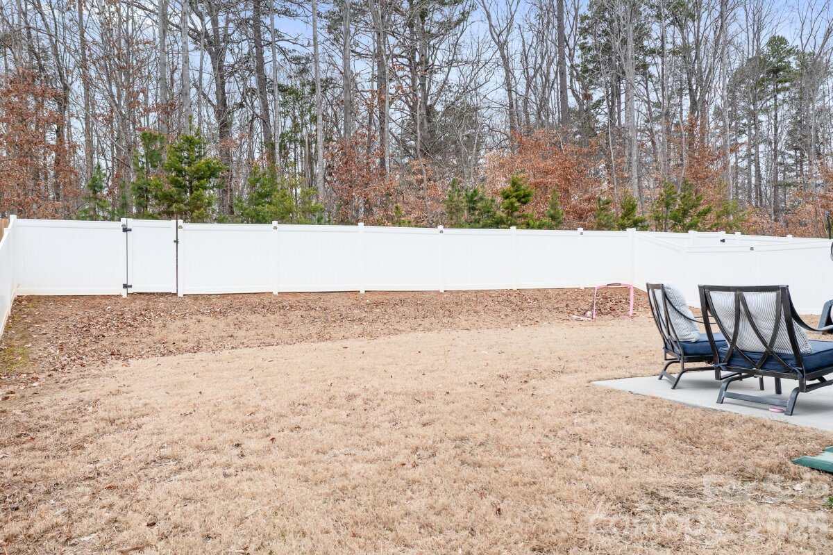 Welcome to this immaculately maintained 4-bedroom, 2.5-bath home that offers the perfect blend of comfort, style, and functionality — all tucked away on a quiet street with a rare tree-lined lot. From the moment you step onto the covered front porch, you’ll feel right at home. Inside, you’ll find durable vinyl plank flooring and LED lighting throughout the main level for both style and efficiency. The flexible front room can easily serve as a formal living room, office, playroom, or whatever fits your lifestyle. The dream kitchen is truly the heart of the home — featuring a large island overlooking the family room with an oversized center sink, staggered cabinetry, granite countertops, under cabinet lighting and sleek white subway tile backsplash. Stainless steel appliances include a gas range, range hood, oven, built-in microwave and dishwasher. A kitchen pantry, ample storage and a convenient drop zone area add everyday practicality. The entire home also comes fitted with custom blinds. Upstairs, you’ll find four spacious bedrooms, including a comfortable primary suite offering room for everyone. The primary bedroom has a large en-suite bathroom and spacious double closets. A large laundry room and hallway linen closet offer plenty of additional storage. Step outside to enjoy the fenced backyard and back patio — perfect for entertaining, pets, or relaxing evenings under the trees. The rare tree-lined lot provides a peaceful setting you don’t often find. This home is situated in the back of the neighborhood on a quiet street with low traffic. Community amenities include a neighborhood pool and playground. Conveniently located with a quick commute to Charlotte, Lincolnton, and Hickory, and just minutes from Lake Norman. This home checks all the boxes — location, layout, and lifestyle.