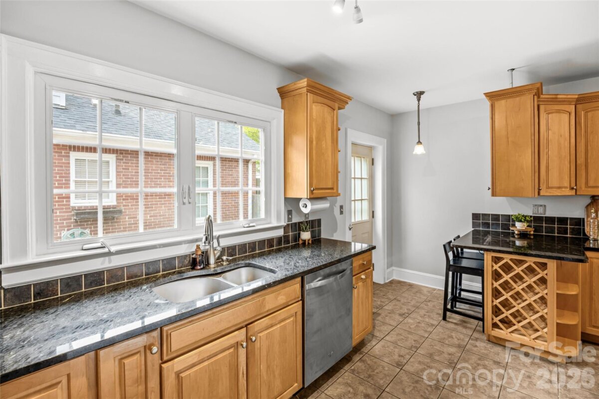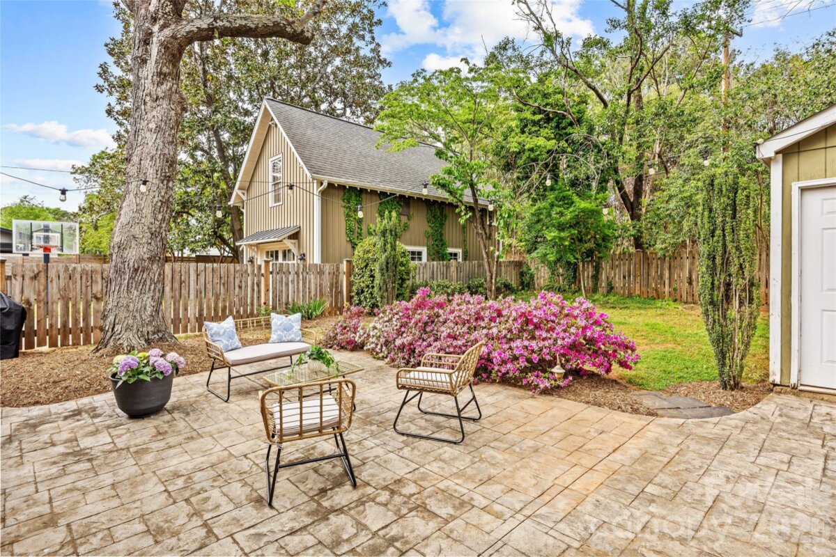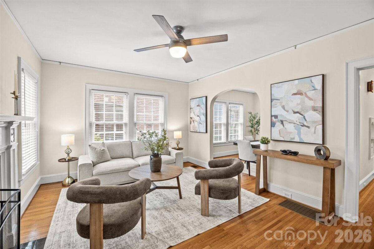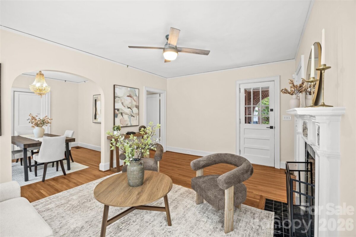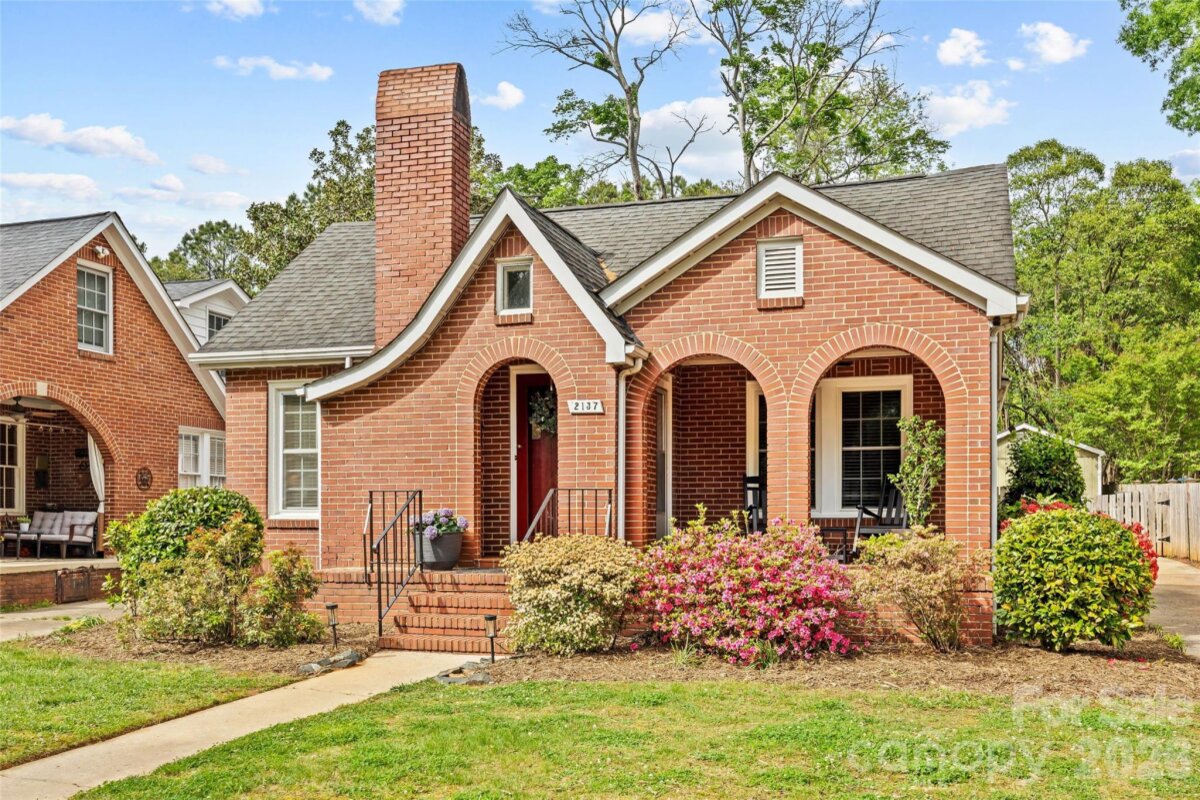 Idyllic full brick cottage right out of a storybook in sought-after Chantilly! Teeming with lovable details and classic features like arched doorways, glass doorknobs, and narrow plank hardwood floors, this 2 bed / 2 bath home is the definition of charming. The welcoming rocking chair front porch, which peeks through brick arches, adds to the home's curb appeal and invites you inside. With an ideal single-story floor plan, you will appreciate the easy flow between the dining room, kitchen, and two separate living areas each with its own fireplace – perfect for today's living! The central kitchen is the heart of the home and features warm wood-tone cabinetry, granite countertops, and stainless steel appliances. The primary bedroom makes for a wonderful retreat thanks to two walk-in closets and a private, en-suite bathroom with a double vanity, soaking tub, and shower. The secondary bedroom is well-appointed and utilizes the hall bathroom, complete with timeless black and white tile and a shower/tub combination. A rare unfinished basement rounds out the home, offering ample storage space. Step outside to enjoy the fully-fenced backyard with a large patio ready for grilling and lounging. Incredible opportunity to live in a highly walkable location just steps from the Chantilly Ecological Sanctuary and popular restaurants and shops in neighboring Plaza Midwood and Elizabeth.