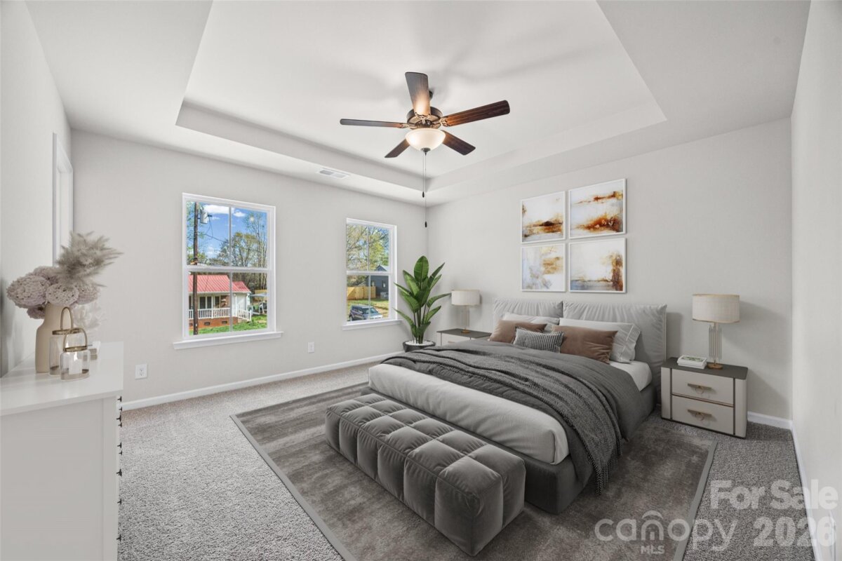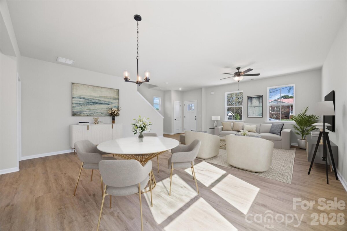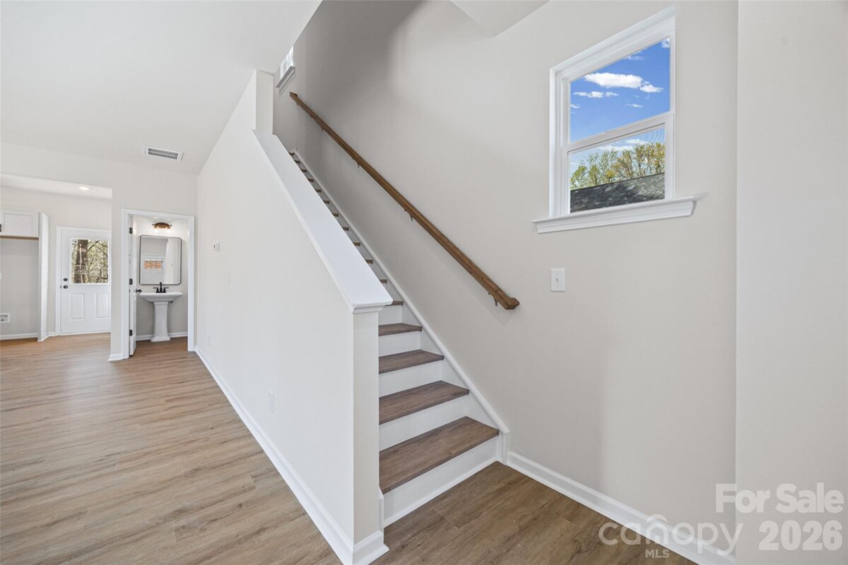 Welcome to this beautifully designed 3-bedroom, 2.5-bath home that blends modern style with everyday functionality. The main level features a bright open floor plan with durable LVL flooring, creating a seamless flow between the living room, dining area, and kitchen—perfect for entertaining or everyday living. The kitchen is the centerpiece of the home, showcasing quartz countertops, soft-close cabinetry, a stylish tile backsplash, and sleek black hardware that adds a clean, contemporary touch. A walk-in pantry provides ample storage and keeps the kitchen organized. Upstairs, you'll find comfortable carpeted bedrooms and beautifully crafted wood stairs leading from the upper level. For added convenience, the home offers upstairs laundry, making daily routines easier. The spacious primary suite offers a relaxing retreat with a fully tiled ensuite bathroom featuring double sinks and modern finishes. Additional highlights include thoughtfully designed living spaces, quality materials throughout, and a layout that balances openness with comfort. This home offers the perfect mix of modern design, practical features, and move-in ready comfort.