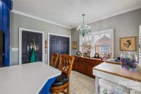 This stunning custom four-sided brick home in the desirable Waterford Place neighborhood offers 3 bedrooms, 2 full baths, 1 half bath, and a two-car garage. A solid mahogany front door and welcoming front porch set the tone for the quality found throughout. Inside, tall ceilings, crown molding, and an elegant upstairs catwalk create a spacious feel, while large windows and plantation shutters fill the home with natural light. The inviting living room features a gas log fireplace, and the updated kitchen offers quartz countertops, newer appliances, a breakfast nook, and opens to the formal dining room—perfect for everyday living and entertaining. The main-level primary suite includes custom built-ins, a walk-in closet, and a fully remodeled luxury bathroom. Upstairs offers two additional bedrooms with newer carpet and convenient walk-in floored attic storage. Enjoy outdoor living with a covered back porch, additional patio, and a fully bricked-in backyard offering privacy and low maintenance. Major updates include new gutters, two HVAC systems (approx. 2 and 3 years old), a roof replaced in summer 2025, water heater under 4 years old, and exterior doors replaced in 2024. Beautifully maintained and move-in ready, with golf cart access to Gaston Country Club.