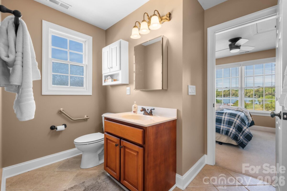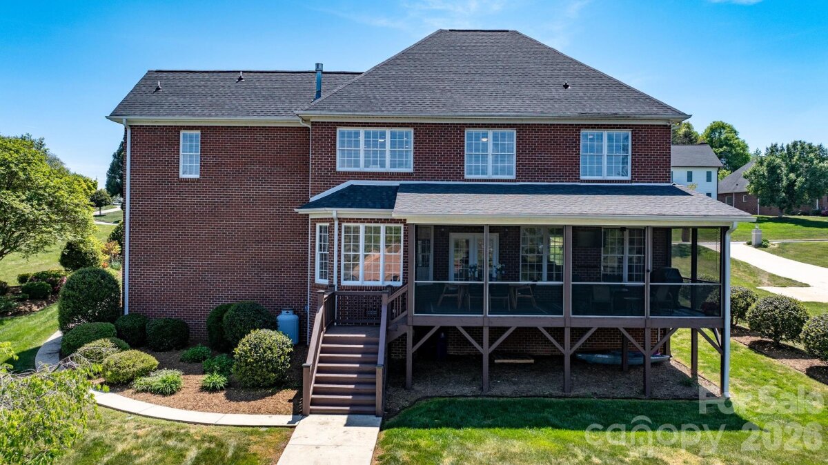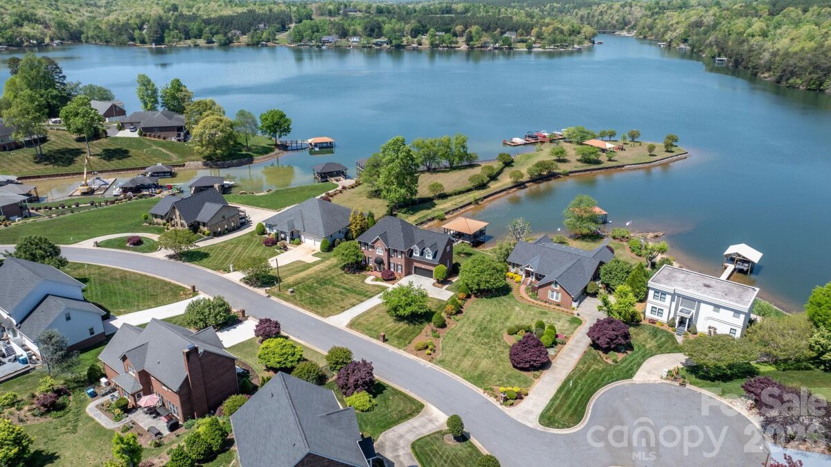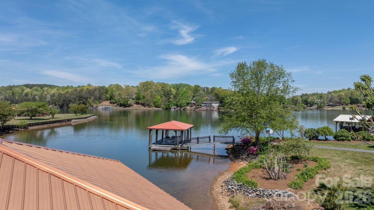 LAKEFRONT, all-brick 3-bedroom, 3.5-bath stately home in a highly sought-after Iswa Point subdivision on Lake Hickory. Immaculately maintained and situated on one of the most level lakefront lots. This home offers breathtaking panoramic water views and beautifully landscaped curb appeal just steps from the shoreline. Enjoy outdoor living with a covered dock featuring a boat lift, as well as a peaceful, park-like common area that enhances the serene setting. Recent updates include a new roof (2025), HVAC system (2022), and tankless water heater (2022). The completely renovated eat-in kitchen has been redesigned to create a more open floor plan, showcasing stunning lake views, custom cabinetry, a large island, granite countertops, and stainless steel appliances including a wall oven and range. The main level also features a cozy family room with a fireplace and lake views, a formal dining room, an additional living room or office, and a convenient half bath. A well-appointed laundry room includes cabinetry, sink, and washer/dryer that remain. Step into the spacious screened porch—an inviting extension of the home—perfect for morning coffee or evening gatherings while enjoying the lake breeze. Upstairs, the expansive primary suite offers a sitting area, fireplace, sweeping lake views, along with two large walk-in closets and a luxurious en-suite bath featuring a tiled walk-in shower, soaking tub, water closet, dual vanities, and makeup area. Two additional bedrooms share a Jack-and-Jill bath, and there is another flex room ideal for an office or additional living space, plus a full hall bath. Additional features include a double garage with a workbench and built-in cabinetry for ample storage. Low HOA's and NO CITY TAXES This home is truly move-in ready—just in time to enjoy summer living on the lake.