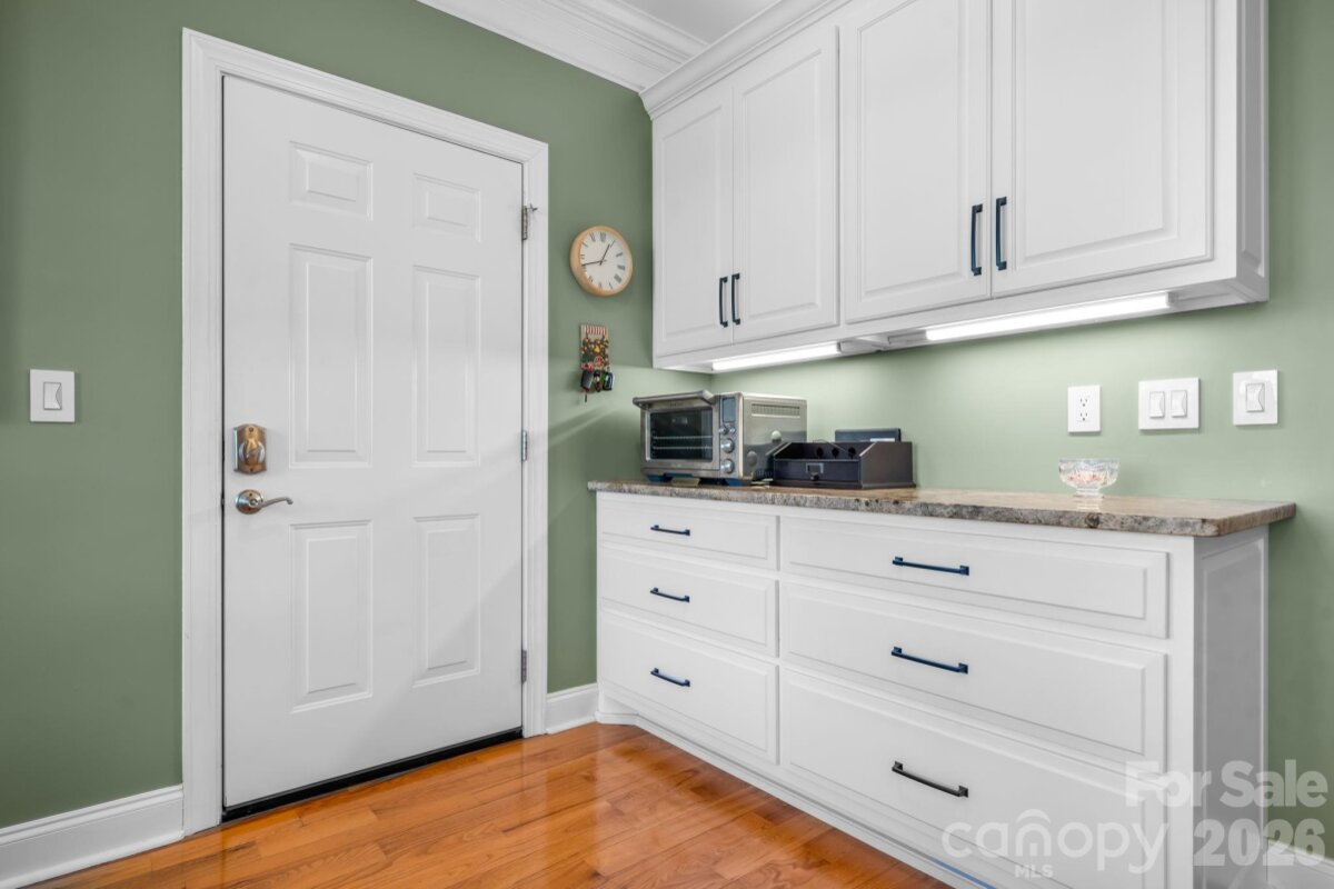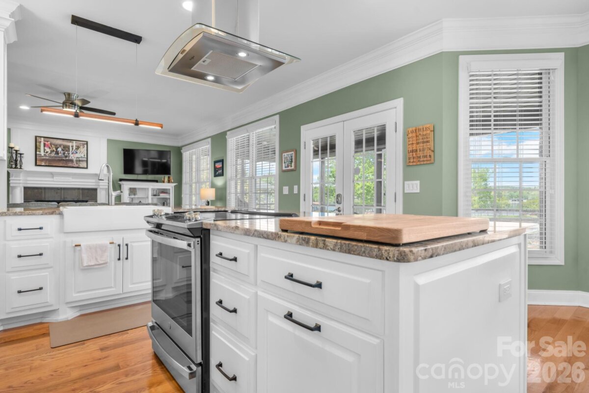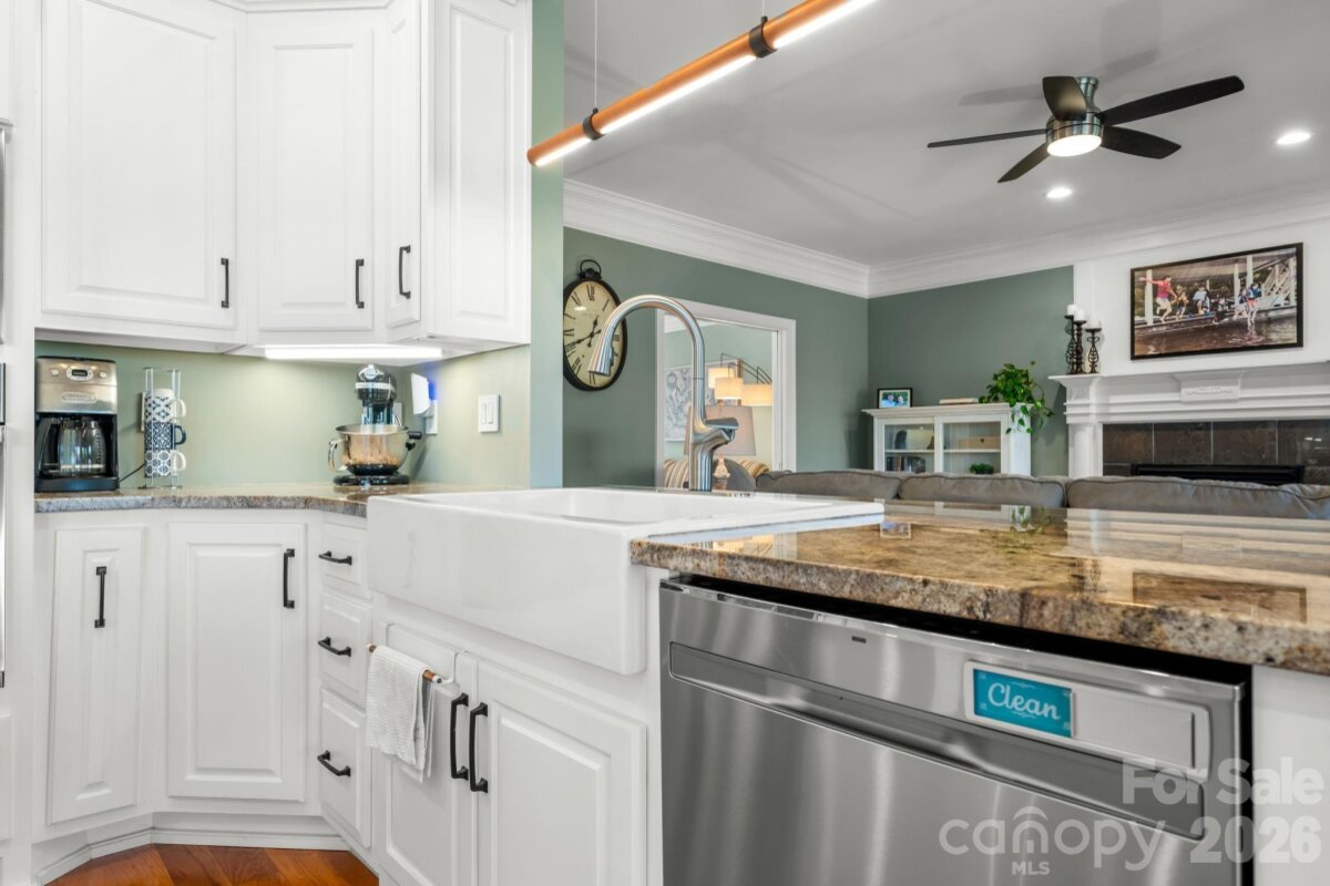 LAKEFRONT, all-brick 3-bedroom, 3.5-bath stately home in a highly sought-after Iswa Point subdivision on Lake Hickory. Immaculately maintained and situated on one of the most level lakefront lots. This home offers breathtaking panoramic water views and beautifully landscaped curb appeal just steps from the shoreline. Enjoy outdoor living with a covered dock featuring a boat lift, as well as a peaceful, park-like common area that enhances the serene setting. Recent updates include a new roof (2025), HVAC system (2022), and tankless water heater (2022). The completely renovated eat-in kitchen has been redesigned to create a more open floor plan, showcasing stunning lake views, custom cabinetry, a large island, granite countertops, and stainless steel appliances including a wall oven and range. The main level also features a cozy family room with a fireplace and lake views, a formal dining room, an additional living room or office, and a convenient half bath. A well-appointed laundry room includes cabinetry, sink, and washer/dryer that remain. Step into the spacious screened porch—an inviting extension of the home—perfect for morning coffee or evening gatherings while enjoying the lake breeze. Upstairs, the expansive primary suite offers a sitting area, fireplace, sweeping lake views, along with two large walk-in closets and a luxurious en-suite bath featuring a tiled walk-in shower, soaking tub, water closet, dual vanities, and makeup area. Two additional bedrooms share a Jack-and-Jill bath, and there is another flex room ideal for an office or additional living space, plus a full hall bath. Additional features include a double garage with a workbench and built-in cabinetry for ample storage. Low HOA's and NO CITY TAXES This home is truly move-in ready—just in time to enjoy summer living on the lake.