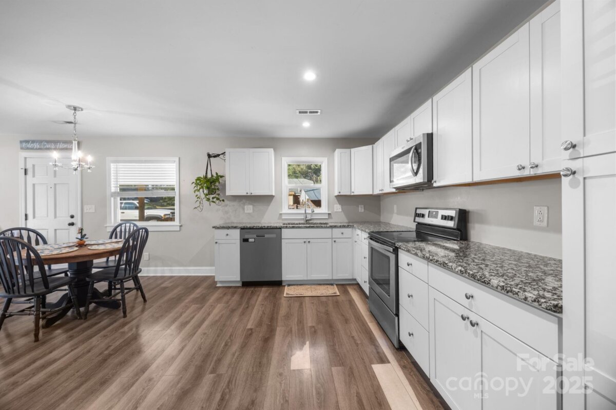 Tucked just outside the city limits with low county taxes and plenty of privacy, this 3 bedroom, 2 bath charmer offers the perfect blend of comfort and country living. Sitting on an acre and a half in the Carson school district, this property has a privacy fence secluding the backyard where the current owners have enjoyed keeping chickens, plus 2 wired outbuildings ideal for hobbies, storage, or a workshop. Inside, you will find modern touches from the 2017 update-including granite countertops, stainless steel appliances, and an open concept living space for your enjoyment. There is also an unfinished basement offering potential for more storage. With ample parking, two attached carports-front and back-and room to spread out, this home delivers both practicality and personality. Whether you're gathering around the kitchen table or relaxing in the backyard, you'll love the warmth and easygoing feel of this home sweet home. Enjoy peaceful country living while minutes from I-85 and downtown China Grove-don't miss this affordable cutie!