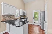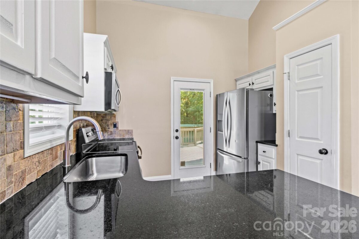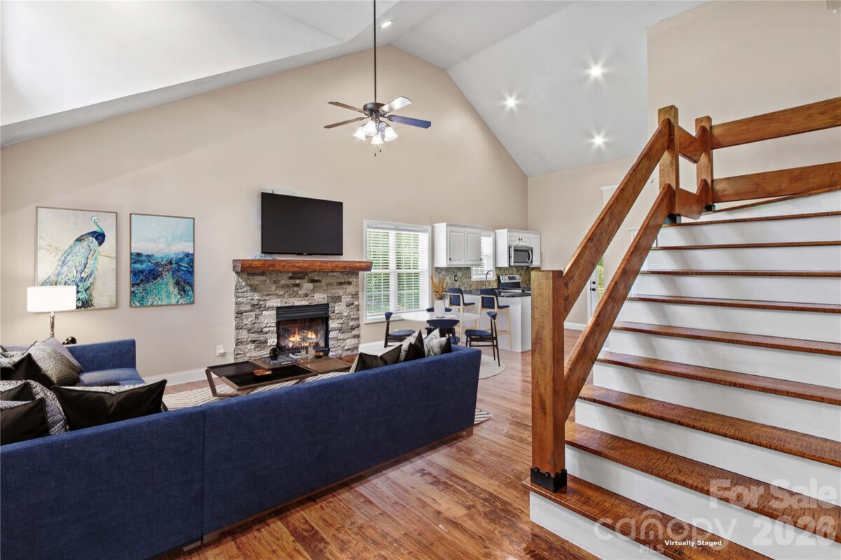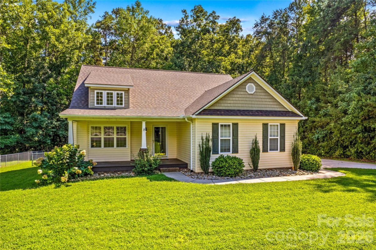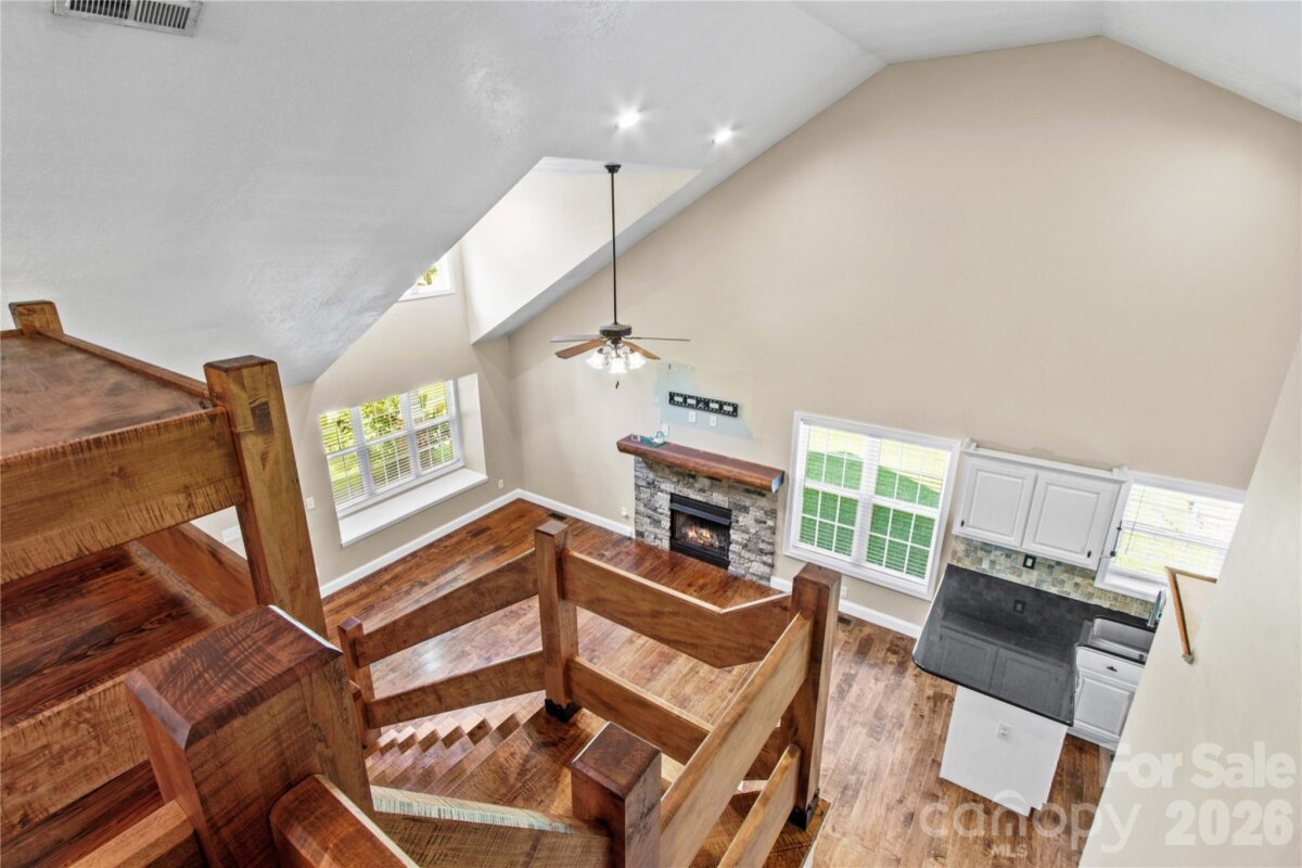 Live close to High Rock Lake in pristine Goodman Lake Meadows! Very pretty 3BR/2BA home on a large lot that sits at the end of a cul-de-sac. Welcoming front porch is "bench swing ready" as the mounts are already installed. Beautiful maple hardwood flooring is locally sourced. Gorgeous custom mantle in LR is locally sourced wood and the fireplace will heat the entire house within 20 mins during the winter. The propane tank for fireplace conveys. Spacious open floor plan. Kitchen has granite counters, newer ss appliances, dual door oven range (Nov 2023) and new dishwasher (Jun 2025). Custom curly maple staircase to large loft/flexible area with built-in bar and overlook for office, play area, or studio. The desk in the loft conveys. Storage in the attic and under stairs. The newly rebuilt & painted deck is supported for a hot tub. Ability to charge EV at 240V outlet on deck. Can connect to a generator with proper switches in panel box. Additional updates include brand new roof (Jun 2025) with 30-year warranty; new air handler with 10-year warranty and 10 mil vapor barrier by Terminix (2022). The additional HLA is an amazing shed with electricity, garage door, HVAC, hot/cold water, mini-oven, space for fridge, TV, electricity and huge concrete pad-mostly covered. Great poker den, studio, workshop– or enclose the entire area for additional living space. Fire pit area with wood storage hut. Large fenced yard with recent french drain. Wooded area behind house is about 250' from High Rock Lake, with walking trails. Near public boat put-in & quick ride on the lake to Water's Edge diner.
