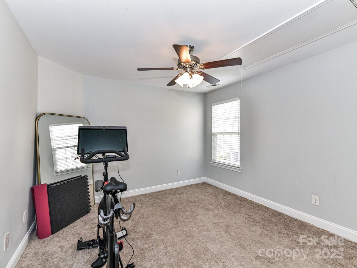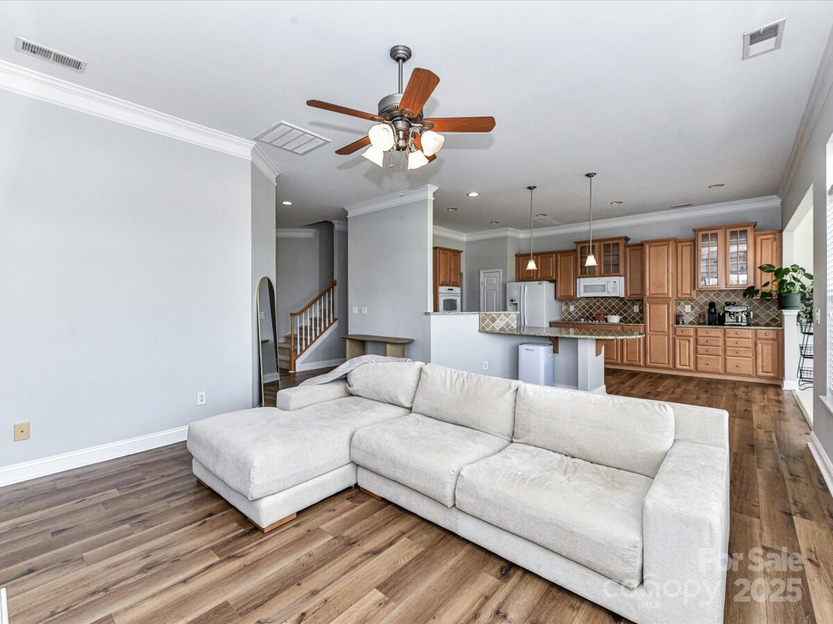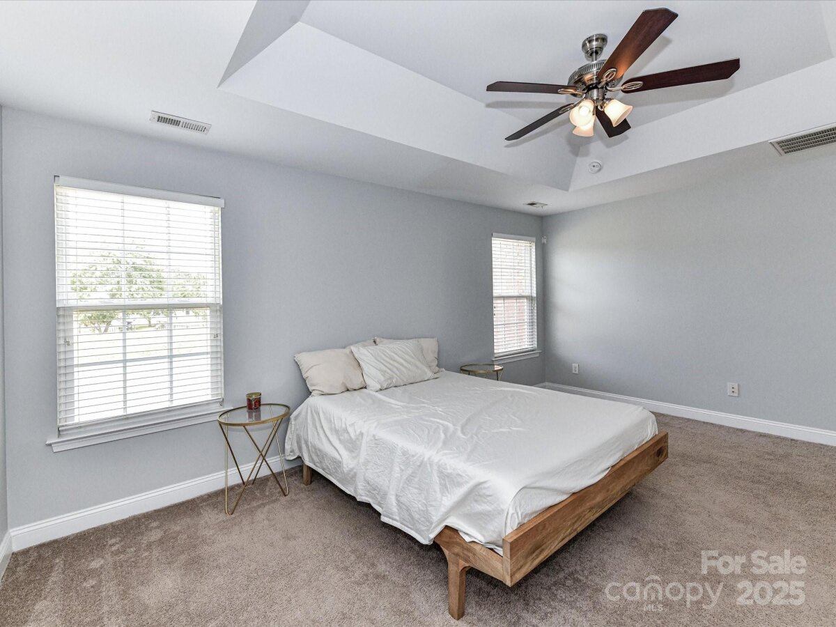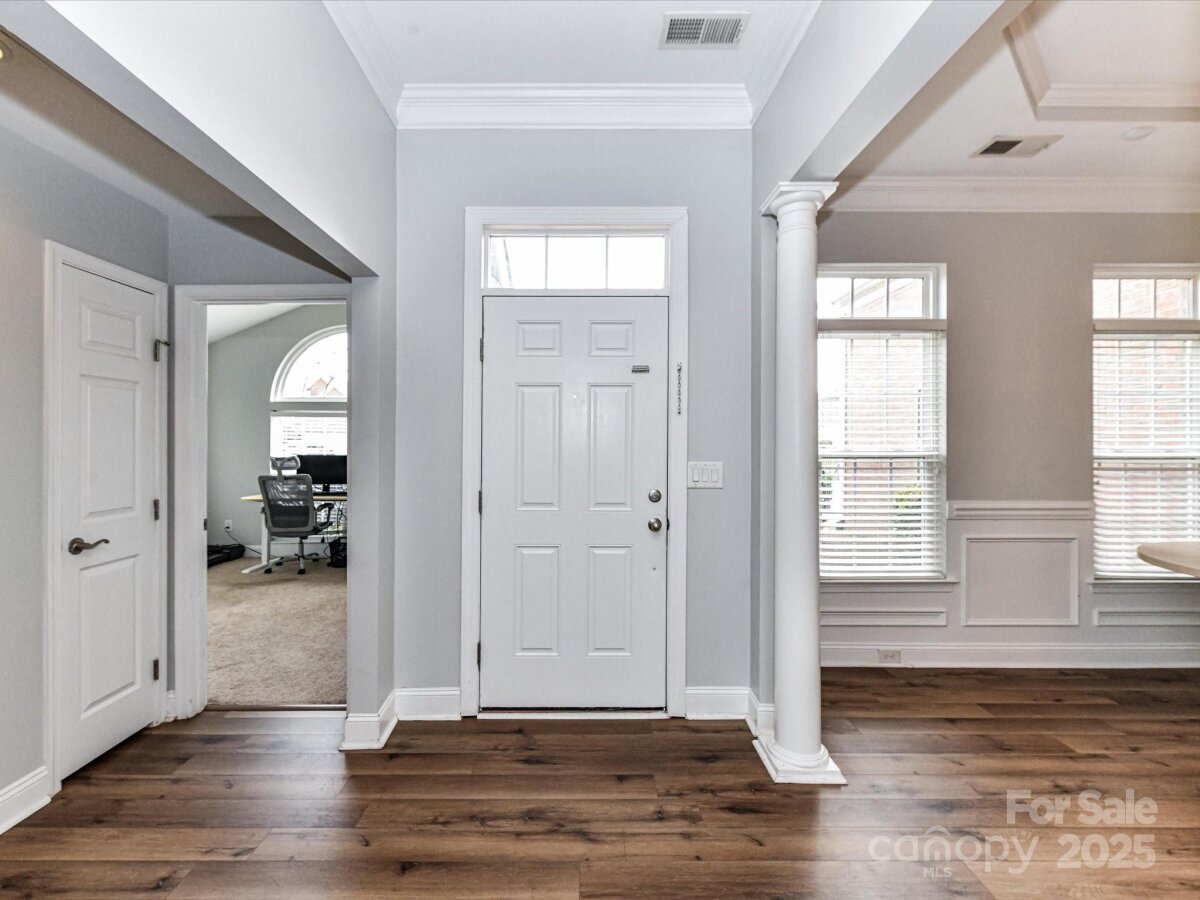 Beautifully maintained brick home on a quiet cul-de-sac street with a brand new roof in June 2025. When you enter you will find newer laminate wood floors and crown molding that flow through the home. The formal dining room to the left of the foyer has a tray ceiling, decorative columns and extensive moldings. The large open living room has built in bookcases on both sides of the gas fireplace and tons of windows letting in tons of natural light. The kitchen features granite counter tops with an attached island that is great for extra seating, 42" cabinets, tile backsplash and views into the sunroom that leads to the rear patio and yard. The split floor plan has the large primary bedroom in the rear of the home that has a tray ceiling and a private bathroom with dual sinks, soaking garden tub, separate shower and walk in closet. The laundry room with cabinets for storage and a sink is right outside the primary bedroom. 2 spacious secondary bedroom, one with vaulted ceiling, and a full bathroom are also located on the main level just off the foyer. Upstairs you will find another bedroom that has access to a full bathroom and a large bonus/media room with attic access for extra storage. The finished oversized 2 car garage also has a pedestrian door that leads out to the side of the house. Relax or entertain on the rear extended patio and back yard. The landscaping for this home is all included in the HOA dues so there is no need to worry about lawn care. The community also has a pool and playground. Great location in a very poplar subdivision close to everything.