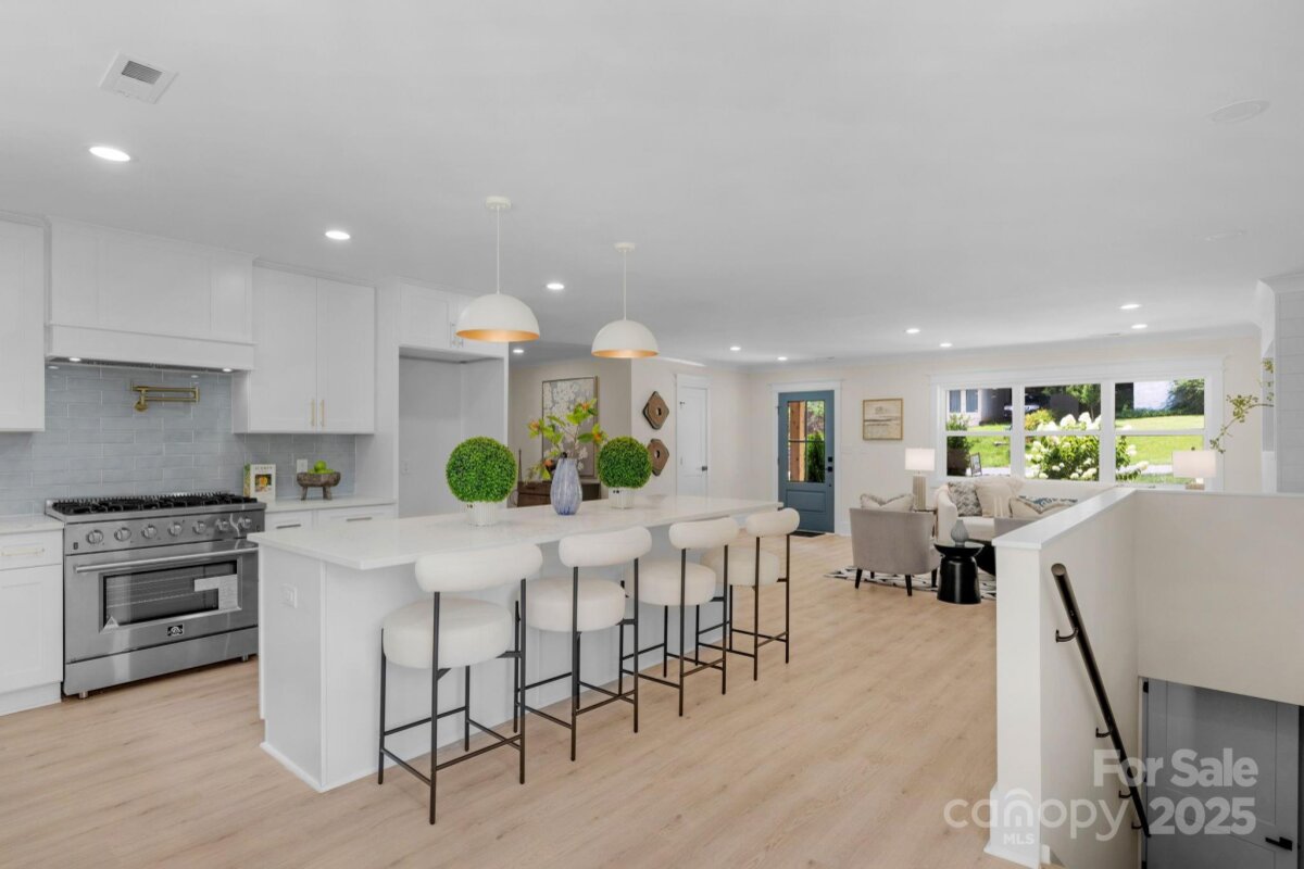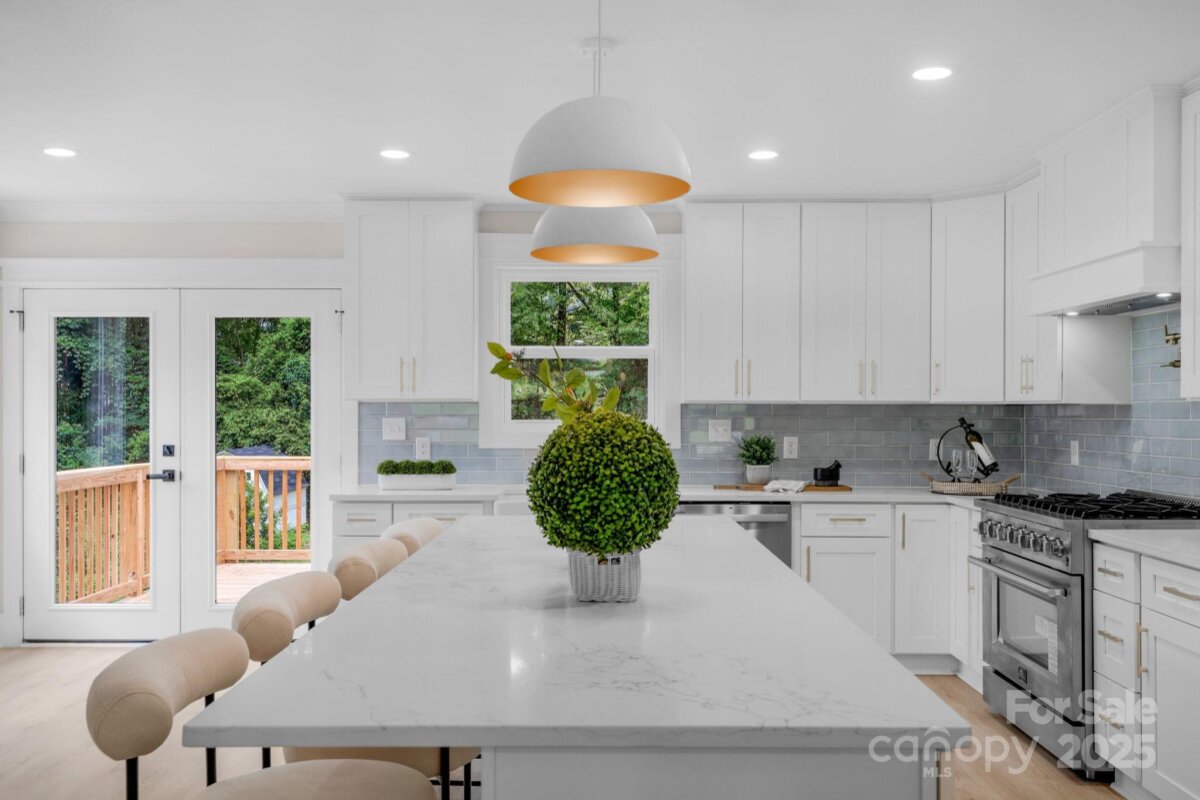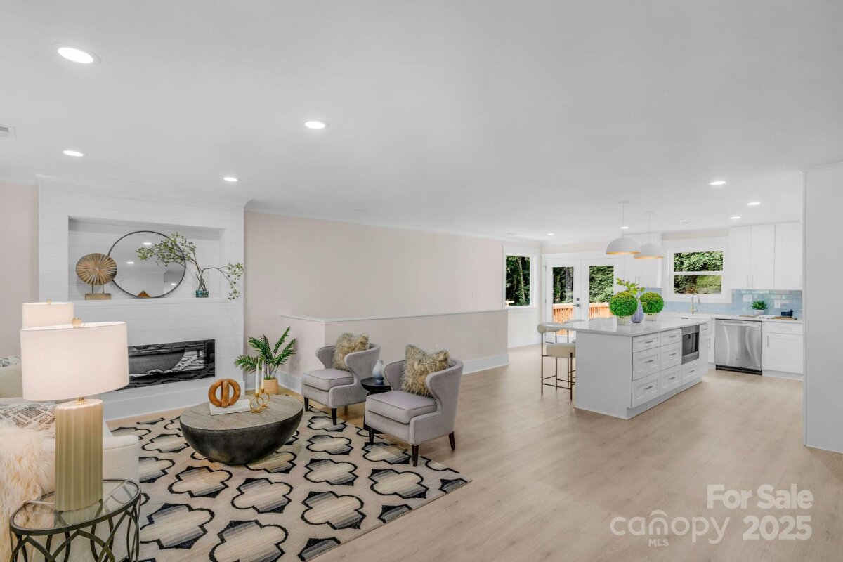 Discover refined living in the heart of Chantilly—where classic brick construction meets a complete modern transformation. This fully renovated 4-bedroom, 3-bath residence offers over 2,800 sq ft of thoughtfully curated space designed for comfort, style, and ease. Every detail speaks to craftsmanship and quality, from wide-plank flooring and designer lighting to elegant crown molding and custom finishes throughout. The chef’s kitchen is the true centerpiece, showcasing an 8-ft quartz island, 36†gas range, wine fridge, and custom cabinetry. French doors extend the space to an elevated deck overlooking a private, landscaped .28-acre lot—ideal for morning coffee or evening wine. Each of the three full bathrooms features double vanities and floor-to-ceiling tile, bringing spa-level luxury to everyday living. The spacious primary suite feels serene and tailored, while two distinct living areas provide flexibility—one for entertaining, the other for relaxed, fireside evenings. The finished walk-out lower level offers a second lounge, guest suite, and a private office with a closet that could easily serve as a fifth bedroom. The basement level also opens to a covered patio for effortless indoor-outdoor flow. Practical luxury continues outside with parking for six vehicles, dual carports, and a long driveway—rare in this coveted neighborhood. Major system updates including new roof, siding, HVAC, plumbing, and tankless water heater ensure peace of mind for years to come. Located just steps from Chantilly Park, dining, and neighborhood coffee shops, this home offers the ultimate walkable lifestyle. For those who value design, privacy, and a connection to Charlotte’s most vibrant districts—215 Wyanoke Ave delivers it all.