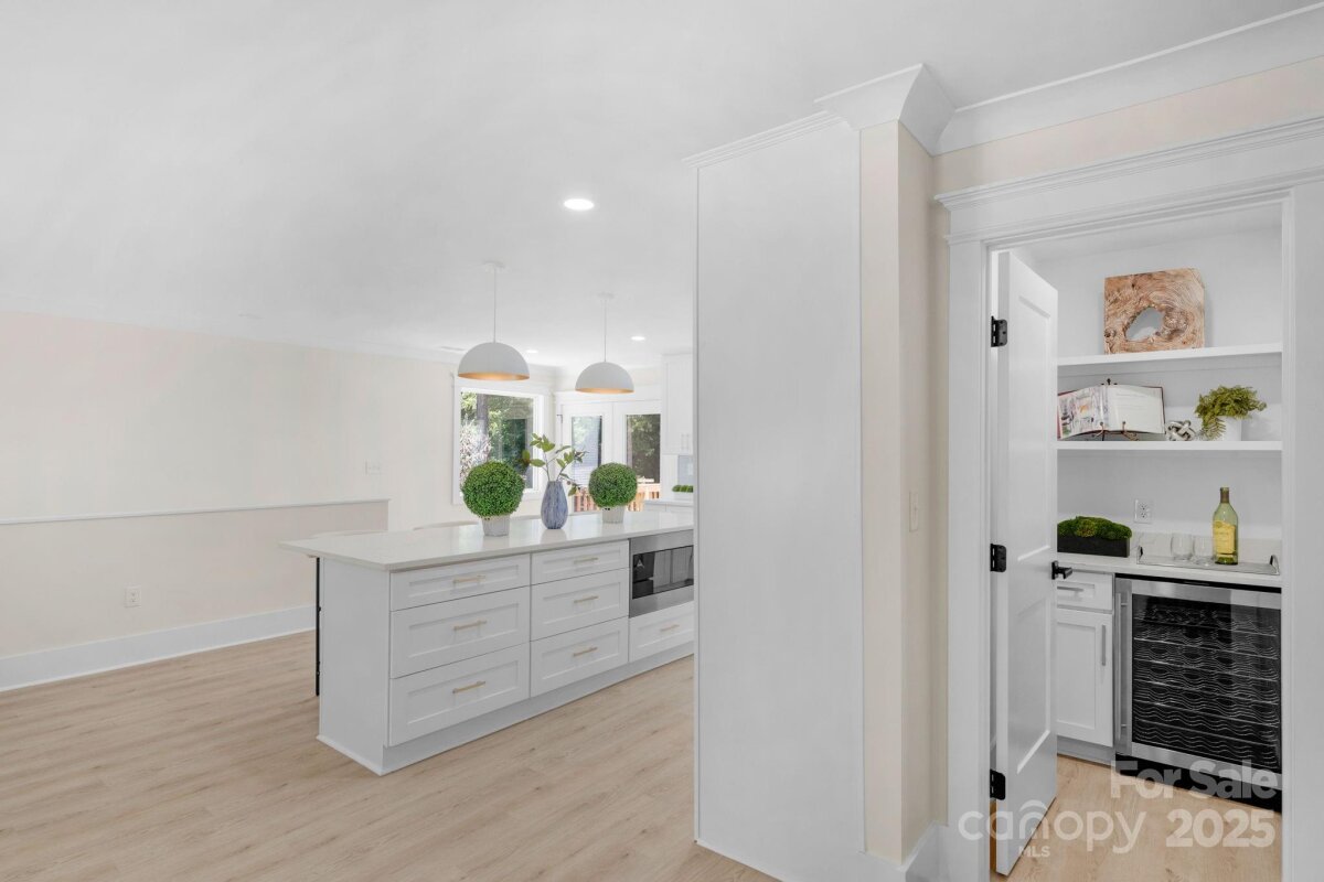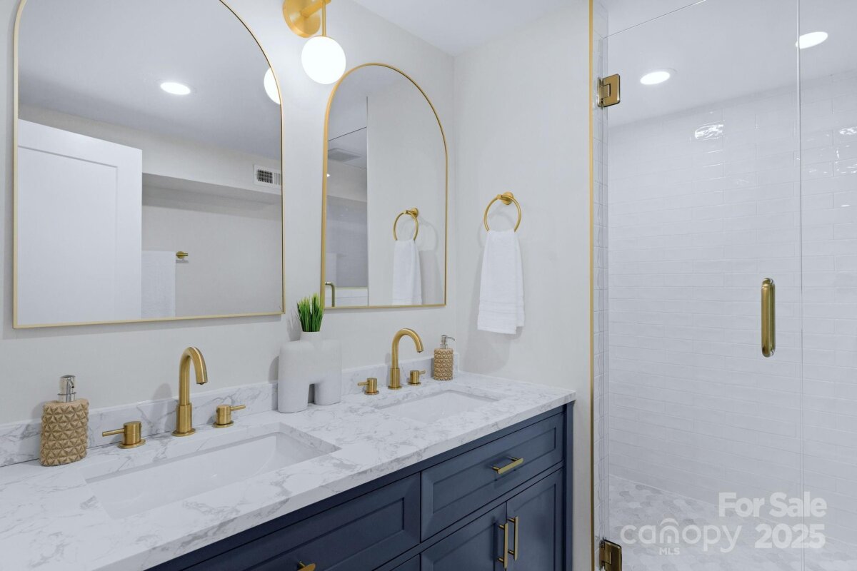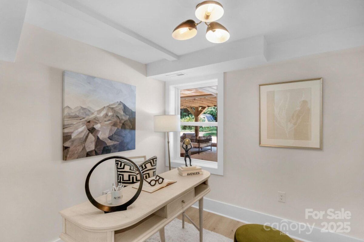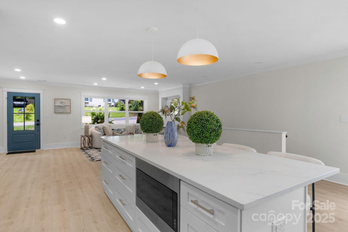 Discover refined living in the heart of Chantilly—where classic brick construction meets a complete modern transformation. This fully renovated 4-bedroom, 3-bath residence offers over 2,800 sq ft of thoughtfully curated space designed for comfort, style, and ease. Every detail speaks to craftsmanship and quality, from wide-plank flooring and designer lighting to elegant crown molding and custom finishes throughout. The chef’s kitchen is the true centerpiece, showcasing an 8-ft quartz island, 36†gas range, wine fridge, and custom cabinetry. French doors extend the space to an elevated deck overlooking a private, landscaped .28-acre lot—ideal for morning coffee or evening wine. Each of the three full bathrooms features double vanities and floor-to-ceiling tile, bringing spa-level luxury to everyday living. The spacious primary suite feels serene and tailored, while two distinct living areas provide flexibility—one for entertaining, the other for relaxed, fireside evenings. The finished walk-out lower level offers a second lounge, guest suite, and a private office with a closet that could easily serve as a fifth bedroom. The basement level also opens to a covered patio for effortless indoor-outdoor flow. Practical luxury continues outside with parking for six vehicles, dual carports, and a long driveway—rare in this coveted neighborhood. Major system updates including new roof, siding, HVAC, plumbing, and tankless water heater ensure peace of mind for years to come. Located just steps from Chantilly Park, dining, and neighborhood coffee shops, this home offers the ultimate walkable lifestyle. For those who value design, privacy, and a connection to Charlotte’s most vibrant districts—215 Wyanoke Ave delivers it all.