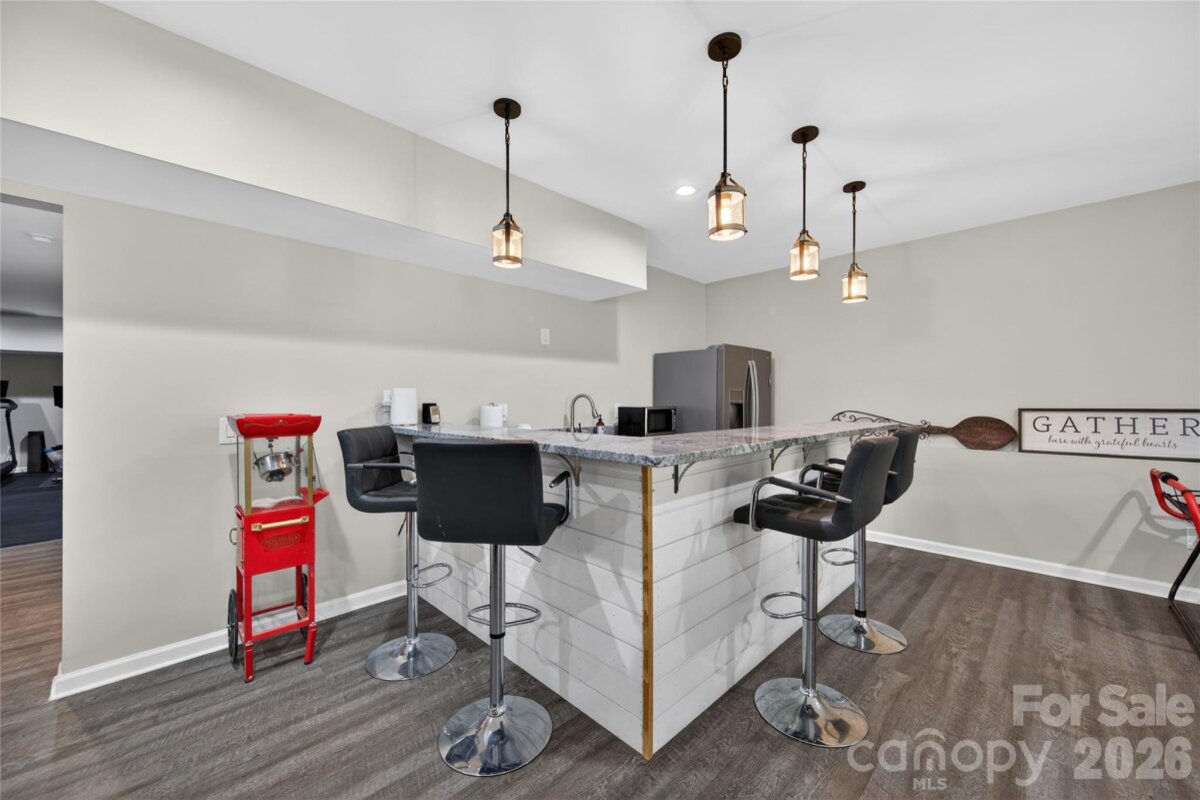Prepare to be impressed by this custom built all-brick John Wieland basement home in Fort Mill’s desirable community of Habersham. Grand 2-story foyer with dramatic curved staircase greets guests. Hardwood floors unite the open concept natural light filled main level. Gourmet Chef’s kitchen features ample 42†cabinets, double wall oven, wall microwave, beverage fridge, 5 burner gas cook top with exterior venting hood and wine rack. Integrated breakfast bar seating nook. Off the kitchen is living room and great room, complete with fireplace & built-in shelving. Convenient first floor guest suite with en suite bath. Formal dining room plus generous study, with closet, complete the first floor. Primary suite is oversized with en suite bath including separate dual vanities, tile encased garden tub, glass enclosed tile shower with double shower heads and enormous walk-in walkthrough closet. Bedroom 3 has attached en suite bath while bedrooms 4 & 5 are connected by Jack N Jill bathroom. Open bonus room on second floor plus huge hardwood floor covered loft providing unlimited flexibility. The fully finished basement impresses with great room and bar area providing unlimited entertaining options. Basement flex space, presently used as home gym, plus full bedroom six. Relax on the screened porch or on the lower patio featuring sitting area plus game area. Fenced flat backyard features mature trees and is ideal for play or entertainment. 3-car garage. Remarkable community includes pool, clubhouse, playground and walking trails around community pond. Conveniently located moments from premier shopping, dining & entertainment with award winning Fort Mill school assignments this is an absolute must see!