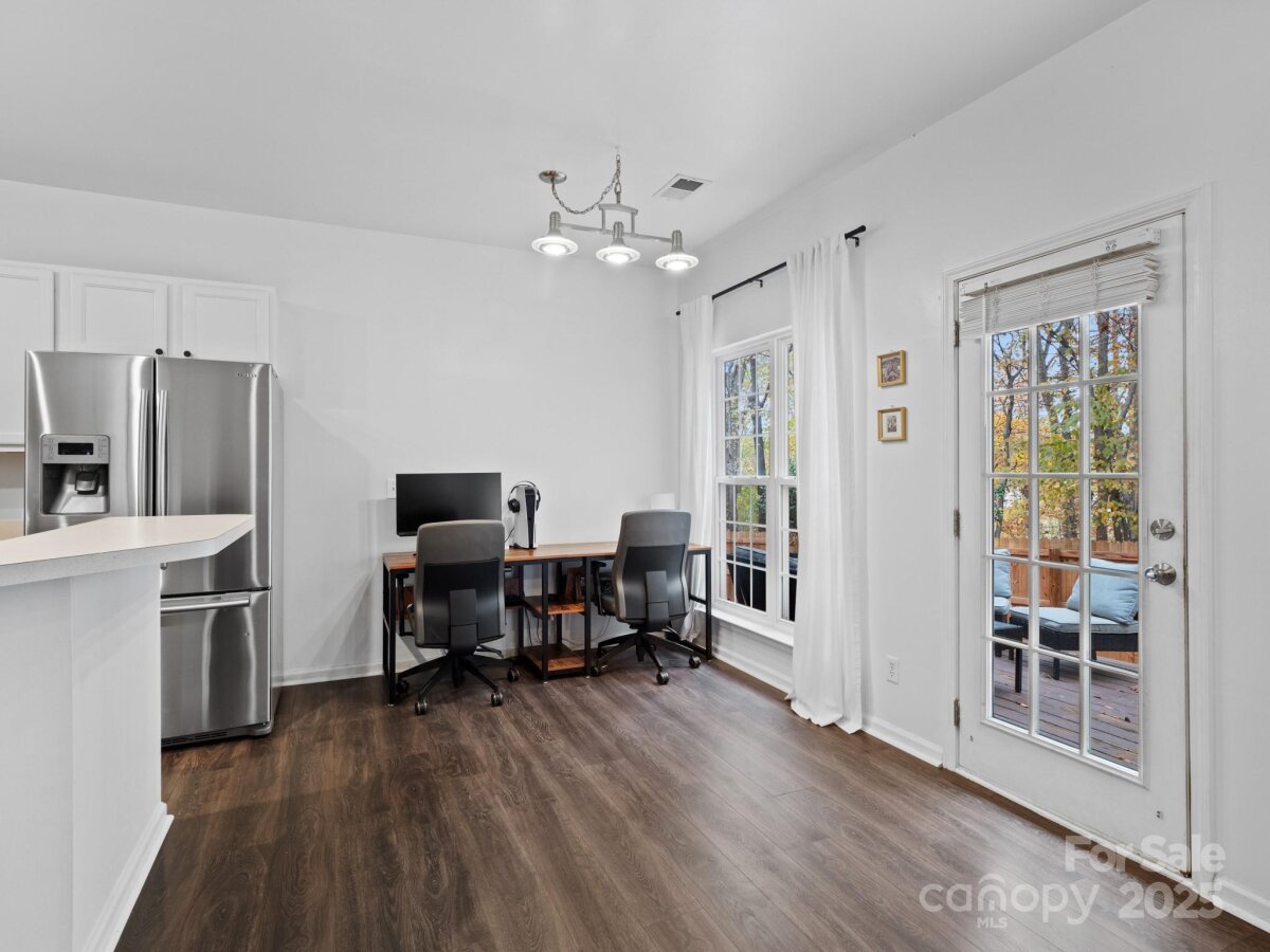 Beautiful 4-Bedroom Home on a Premier Cul-de-Sac Lot in Mooresville! This fantastic, well-maintained home is perfectly situated on one of the best lots in the neighborhood—nestled on a quiet cul-de-sac in a prime Mooresville location close to shopping, dining, and top-rated schools. The spacious, open floor plan features updated flooring throughout, refreshed bathrooms, and fresh, neutral paint for a move-in ready feel. Stylish updates include modern black-finish interior doors and hardware. The front room is currently used as an office but offers great flexibility to serve as a formal dining room or additional living space. Enjoy the private, serene backyard surrounded by mature trees, complete with a firepit—ideal for relaxing or entertaining. Don’t miss the beautiful wooded area with a peaceful stream just beyond the gate—your own natural retreat right at home! Stream leads to nearby pond and park.