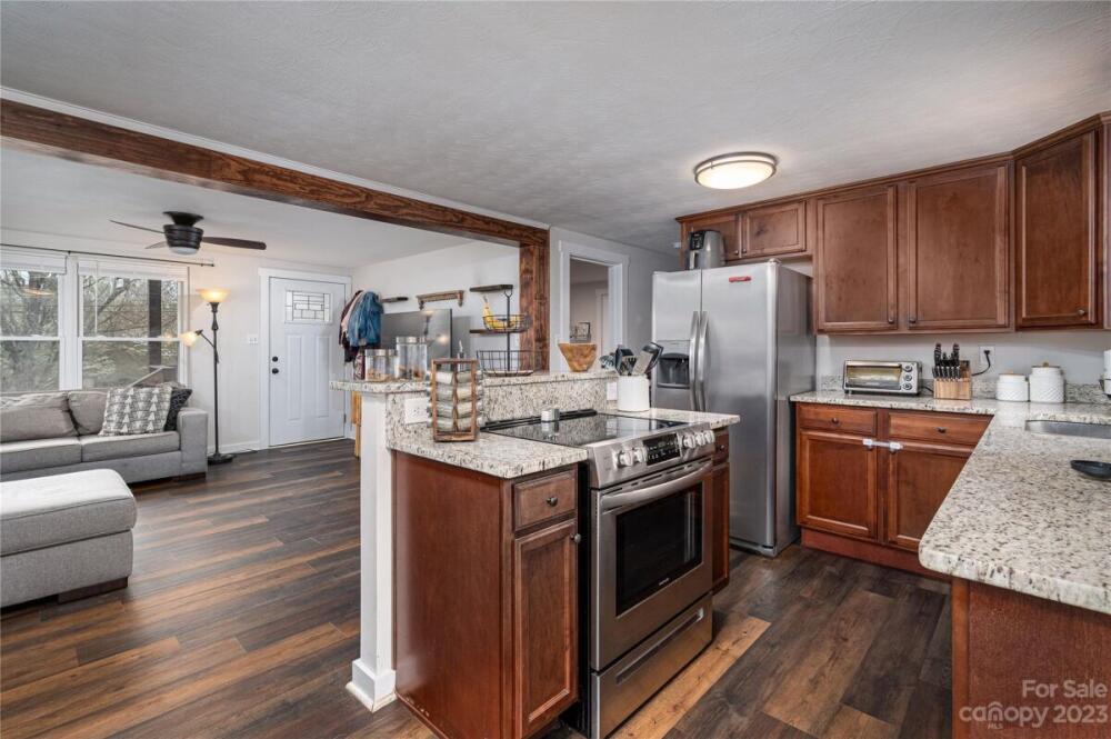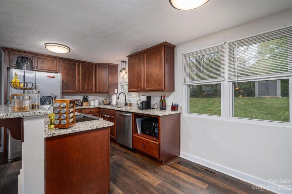 Check out this Beautiful 1960's 3BR 2BA Brick Ranch with newer finishes in Conover! Open Kitchen, living and dining area. The 2019 Remodel included custom cabinets, granite countertops in kitchen and bath, beautiful vinyl plank flooring throughout & new light fixtures! Down the hall you'll find a primary suite with full bath, two guest bedrooms with a shared full bath. Gorgeous covered front porch, attached 1 car carport with utility room. Fenced in back yard with wood patio & Small storage building. Come see what all Conover has to offer!