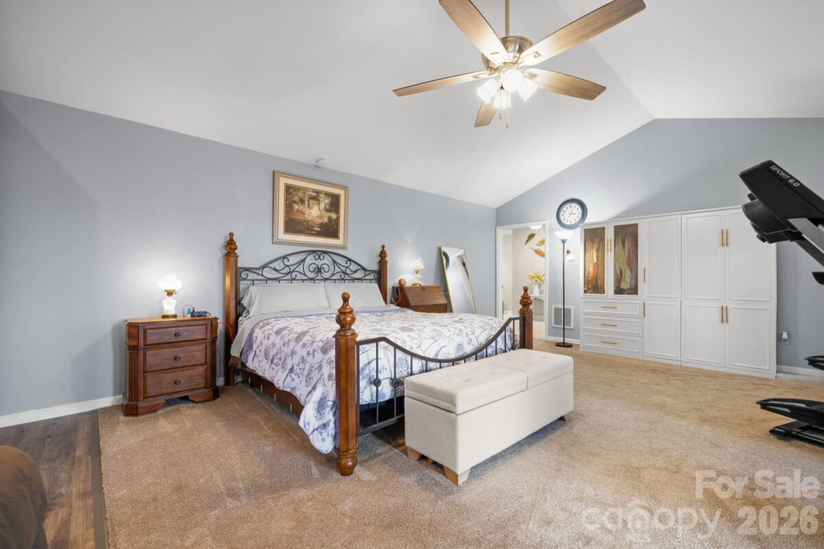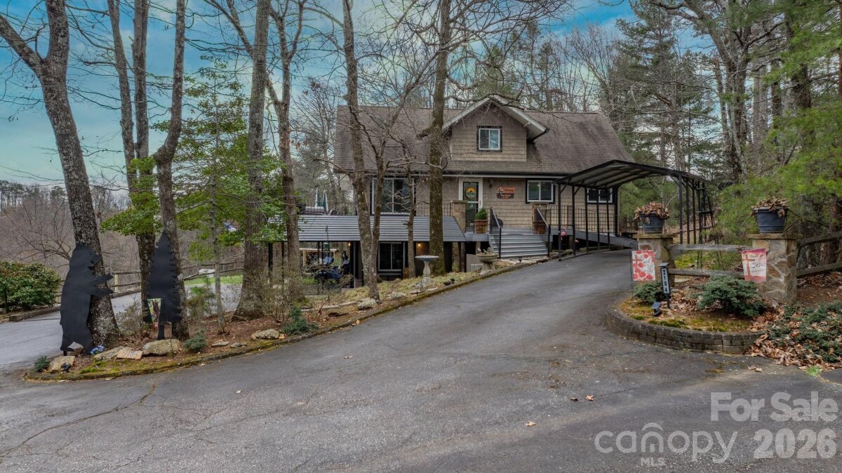 Stunning mountain cottage w/breathtaking eastern sky views! Perfect for unforgettable sunrises & moonrises over the mountains. Located near the entrance to South Mountain State Park in the gated community of Pine Mountain Lakes, this beautifully maintained home offers the perfect blend of comfort, craftsmanship, & natural beauty. With natural rock walls, a freestanding swing, lavish fire pit area, & peaceful surroundings that frequently attract deer, the exterior simply welcomes you home. The property features a variety of fruit-bearing plants & vines including fig, apple, pear, pecan, muscadine, blackberry & roses. Additional outdoor features include upper & lower driveways, covered parking, a 3-bay tractor shed, storage shed, garage workshop (392 ft², exterior access only) & a lower-level covered patio. A remote-controlled retractable awning provides shade over the composite wraparound deck w/ramp access, creating the perfect space to relax & take in the incredible mountain views. Inside, the main level offers an open layout w/parquet wood flooring & expansive windows that capture the spectacular scenery. The well-appointed kitchen features granite counters, corner pantry, instant hot water at the sink & a dine-in island w/additional bar seating. The living room is filled w/natural light & showcases a beautiful stone fireplace w/gas logs crafted from stones sourced from Fontana Dam. The open dining area offers the same stunning views & direct access to the wraparound deck. A convenient half bath is located just off the kitchen. The spacious main-level primary suite provides a private retreat w/sitting area, double closets & private access to a screened porch overlooking the mountains. The ensuite bath includes a walk-in shower, jetted tub, bidet, dual sinks, large linen closet & timed heat lamp. Throughout the home you’ll find solid wood doors & the stairway was crafted from 100+ year-old barn wood while the beams and the parquet flooring was milled directly from this land, adding unique character & history. Upstairs are two additional bedrooms, each w/wood floors, ceiling fans & mini-split systems. One bedroom includes two attic access doors, while the other offers built-in shelving & cubbies. A shared bath w/Corian countertops, tub/shower combo & large linen closet serves the upper level. The lower level provides additional living space w/marble flooring, a second gas log fireplace crafted from Fontana Dam stone, built-in credenza & a full bath w/walk-in shower. Behind the wine cellar door is the laundry & utility area featuring a commercial-grade sink, non-slip tile flooring, storage shelving & a propane tankless water heater. The home also includes a Carrier propane furnace (2013) w/dehumidifier & central air conditioning. With newer Champion windows & select doors, exceptional craftsmanship & panoramic eastern-facing mountain views, this special property is perfectly suited as either a full-time residence or a relaxing mountain getaway, offering a rare combination of privacy, comfort & unforgettable scenery.