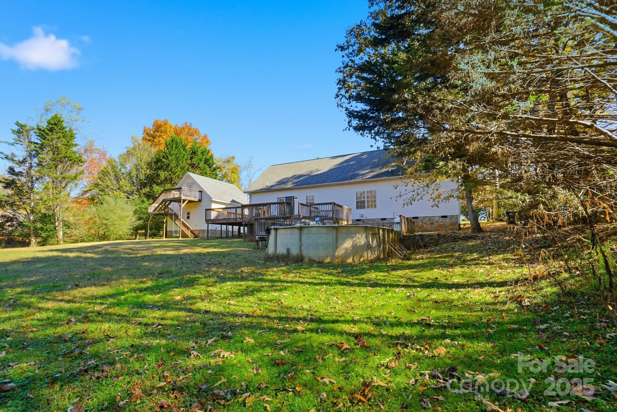 Discover this well-maintained one-story home set on three parcels totaling 2.3 acres, offering privacy, flexibility, and room to grow—just minutes from I-40 while still tucked away in a peaceful setting. Located on a quiet dead-end street, the property offers a peaceful, natural setting with frequent deer sightings and a sense of privacy rarely found so close to town. The main level provides comfortable single-story living with an inviting layout ideal for everyday life and entertaining. In addition, the home features a fully framed upper level within the roofline, offering substantial future expansion potential for additional bedrooms, a home office, children’s play room, or bonus living space (buyer to verify permitting and HVAC requirements). This space is already laid out and ready for customization, making future finishing straightforward and flexible. A detached two-car garage includes a finished bonus space above, complete with drywall, flooring, lighting, electrical, and a window heating and cooling unit—perfect for a home office, studio, gym, or hobby space. This area is not included in the home’s heated living square footage. Outdoor living is a highlight, with a recently stained back deck overlooking the expansive property, ideal for relaxing or entertaining. A hot tub and above-ground pool convey as-is. Whether you’re looking for a home with space to grow, versatile bonus areas, or acreage with long-term potential, this property offers a rare combination of usability today and opportunity for tomorrow.