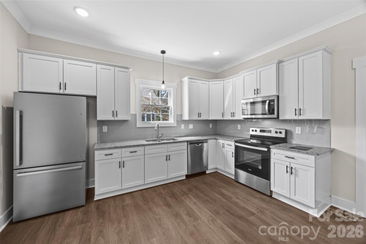 Welcome to 218 Morgan Street, a residence where the timeless character of a 1922 bungalow meets a comprehensive, top-to-bottom renovation completed in 2022. This isn't just a surface level refresh; this home was stripped back and rebuilt from top to bottom for the modern era. The interior radiates updated comfort with Luxury Vinyl Plank flooring and elegant crown molding throughout the entire home. The gourmet kitchen serves as the ultimate centerpiece, boasting custom cabinetry, sleek granite countertops, a stylish tile backsplash, and a full suite of nearly-new stainless steel appliances. Functionality is front and center with the addition of a second bathroom, a dedicated pantry, and a convenient new mudroom created from the enclosed back porch. Beyond the aesthetic upgrades, you’ll find peace of mind in the extensive "behind-the-walls" improvements that were completed in 2022. From all-new electrical wiring and plumbing to a completely new HVAC system, including new ductwork, and a modern water heater. Every detail of this historic home has been addressed including a new roof installed in 2024. Outside, the curb appeal shines with new vinyl siding, updated porch columns, and a newly installed fence that fully encloses the back yard. All of this just moments from the vibrant energy of Old Town Rock Hill. If you are seeking a historic home with charm and character, coupled with the peace of mind of a recently renovated property, this is absolutely it.