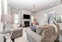 Discover your perfect sanctuary in this breathtaking 4-bedroom, 3.5-bathroom modern home, constructed in 2017, boasting 3,453 square feet of luxurious living space in a highly sought-after neighborhood. This move-in-ready masterpiece showcases an open-concept floor plan, seamlessly blending a gourmet kitchen with a large center island, stainless steel appliances, custom wood range hood, and expansive walk-in pantry with the bright, airy living and dining areas. The main-level primary suite offers a tranquil escape, featuring a spa-inspired en-suite bathroom with dual vanities, a soaking tub, and a walk-in shower. Elegant touches like stylish barn doors, sophisticated crown molding, and high ceilings elevate the home’s charm. Upstairs, a versatile bonus room is ideal as a playroom, media room, home office, or extra bedroom. Entertain effortlessly in the meticulously landscaped backyard, complete with an outdoor fireplace and Bluetooth ceiling speakers on the patio for the ultimate ambiance. The living room also includes built-in Bluetooth speakers for immersive sound. Additional highlights include an oversized garage for storage or a workshop, large windows flooding the home with natural light, and premium finishes throughout. Nestled in a vibrant community with parks, top-rated schools, and convenient access to shopping, dining, and entertainment, this energy-efficient, contemporary home is a rare gem. Schedule your private showing today to experience unparalleled luxury and comfort!