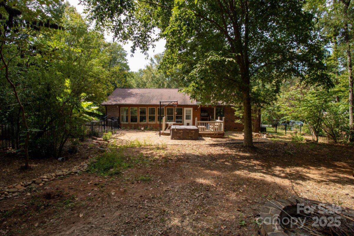 Stunning year round seasonal blooming flower gardens. Sitting on your covered from porch, Amazing all weather room or relaxing in the hot tub on the rear patio, you will appreciate the amazing gardens . Ranch style home with an open concept and beautiful stone fireplace in the family room. Huge Primary suite ,updated primary bathroom, walk in closet with a large built in safe. Two out buildings/storage areas. Mooresville graded schools