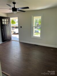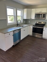 This 3 bedroom and 2 bath home is located in Elkin City limits. It has new windows, doors, paint, fixtures, and flooring. New heat pump and brand new deck and porch with a porch swing to enjoy the sunshine. Plus a storage building that has new siding and paint. All appliances included.