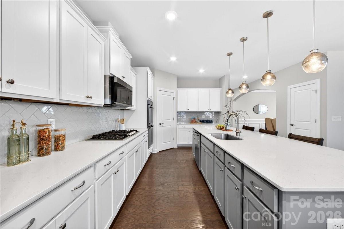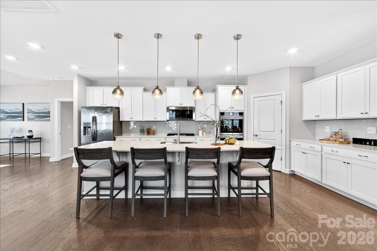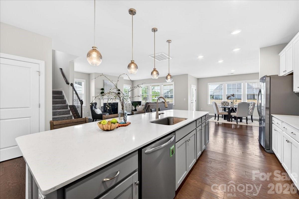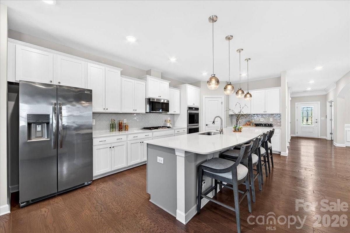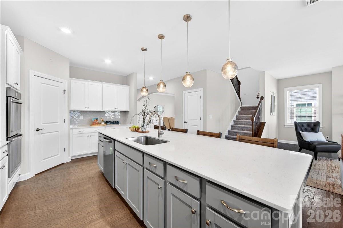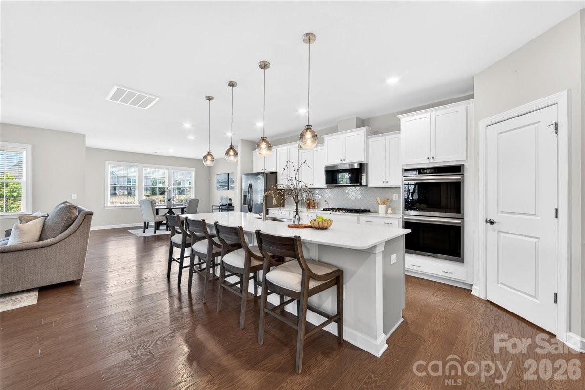 Prepare to by wowed by this beautiful home that provides space and functionality for both everyday living and entertaining. With 4 bedrooms, 3.5 baths, a dedicated den/office, bonus room, and 3 car garage, the flexibility in this floor plan can be tailored to fit. The heart of the first floor is the large open kitchen with an expansive island, gas cooktop and double ovens. The primary suite boasts an incredible walk in closet, split vanities and oversized shower. Enjoy relaxing on the covered back porch which overlooks the fenced yard and backs up to neighborhood green space. Conveniently located to 1-77, Birkdale, Lake Norman, Northstone Country Club and a host of shops and restaurants.