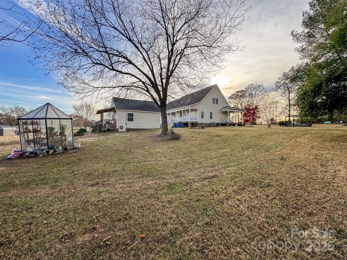 This property offers a rare combination of space, flexibility, and well-planned features across multiple buildings on 2.78 acres. From the moment you arrive, the full-length front porch creates an inviting first impression—an easy place to slow down, greet the day, or unwind in the evenings. Inside the main home, hardwood floors flow throughout the main level, tying together a warm and open great room that includes the living area, kitchen, dining space, and breakfast nook. The primary suite is located on the main level and features a walk-in closet, full bathroom, and beautiful French doors that open directly onto the full-length rear porch. From there, you can enjoy views of the fenced inground pool and the wide backyard—an ideal setting for quiet mornings or gatherings around the water. Upstairs offers two additional bedrooms, a full bathroom, and a finished room over the garage that’s perfect for a bonus room, studio, guest space, hobby room, or office. All bedrooms include walk-in closets, and each level has its own heat pump for efficient comfort. A Rinnai on-demand water heater serves the main home. Beyond the main residence, the property continues to deliver on versatility. The fully self-contained Auxiliary Dwelling Unit (ADU) has its own septic system, kitchen, living area, full bathroom, and a mini-split system for heating and cooling. This independent structure opens the door to a variety of practical arrangements—multi-use living setups, long-term guests, extended stays, workspace needs, or other flexible options. Another standout feature is the large detached building, offering over 1,700 square feet with two garage doors, substantial enclosed space, and a convenient half bath. It’s well suited for equipment, workshop use, storage, projects, or any number of functional needs where extra room makes all the difference. Altogether, this property brings together the comfort of a well-designed primary home, the enjoyment of an inground pool, the autonomy of a separate ADU, and the utility of a substantial detached building—all arranged across a spacious 2.78-acre setting. It’s an appealing find for anyone who wants room to spread out, space for multiple living or working setups, or the freedom to create the lifestyle that fits them best. Thoughtful, inviting, and full of possibility, this property adapts to a wide range of needs with ease.