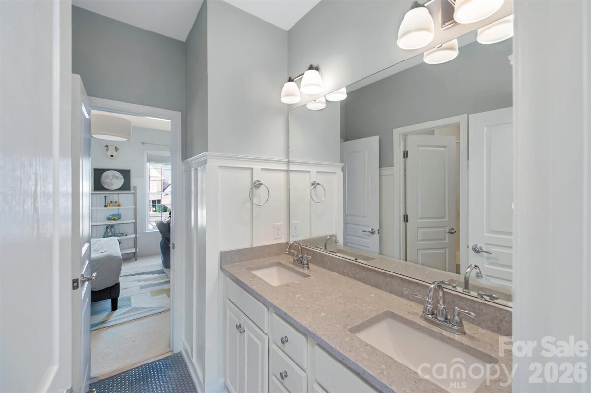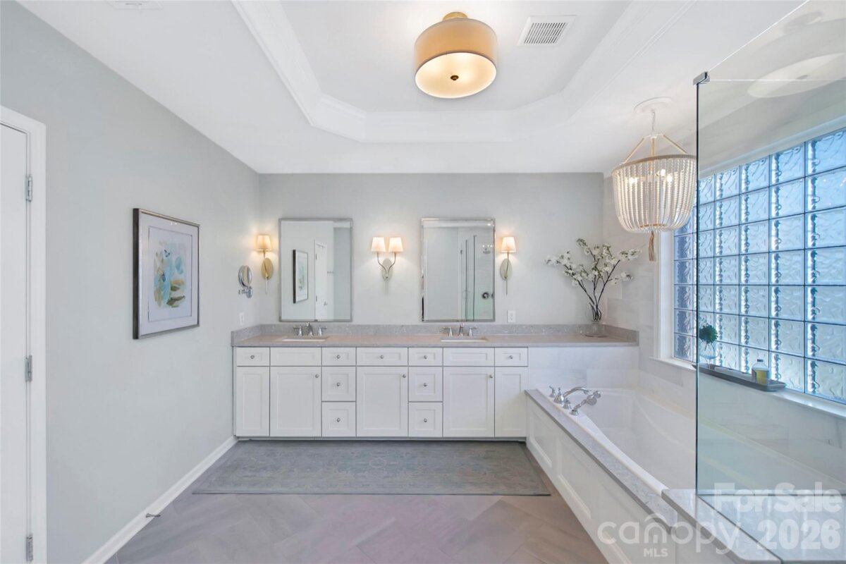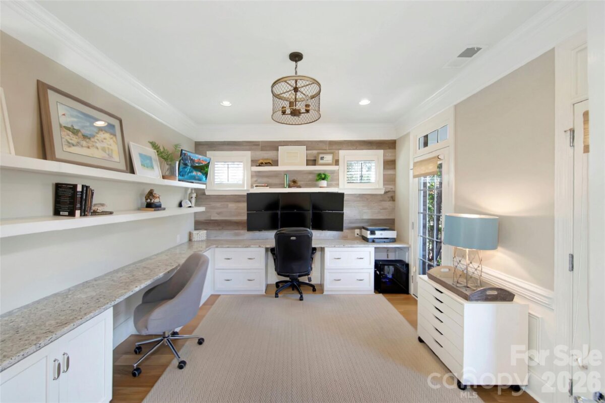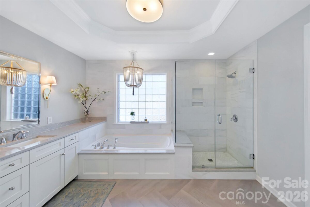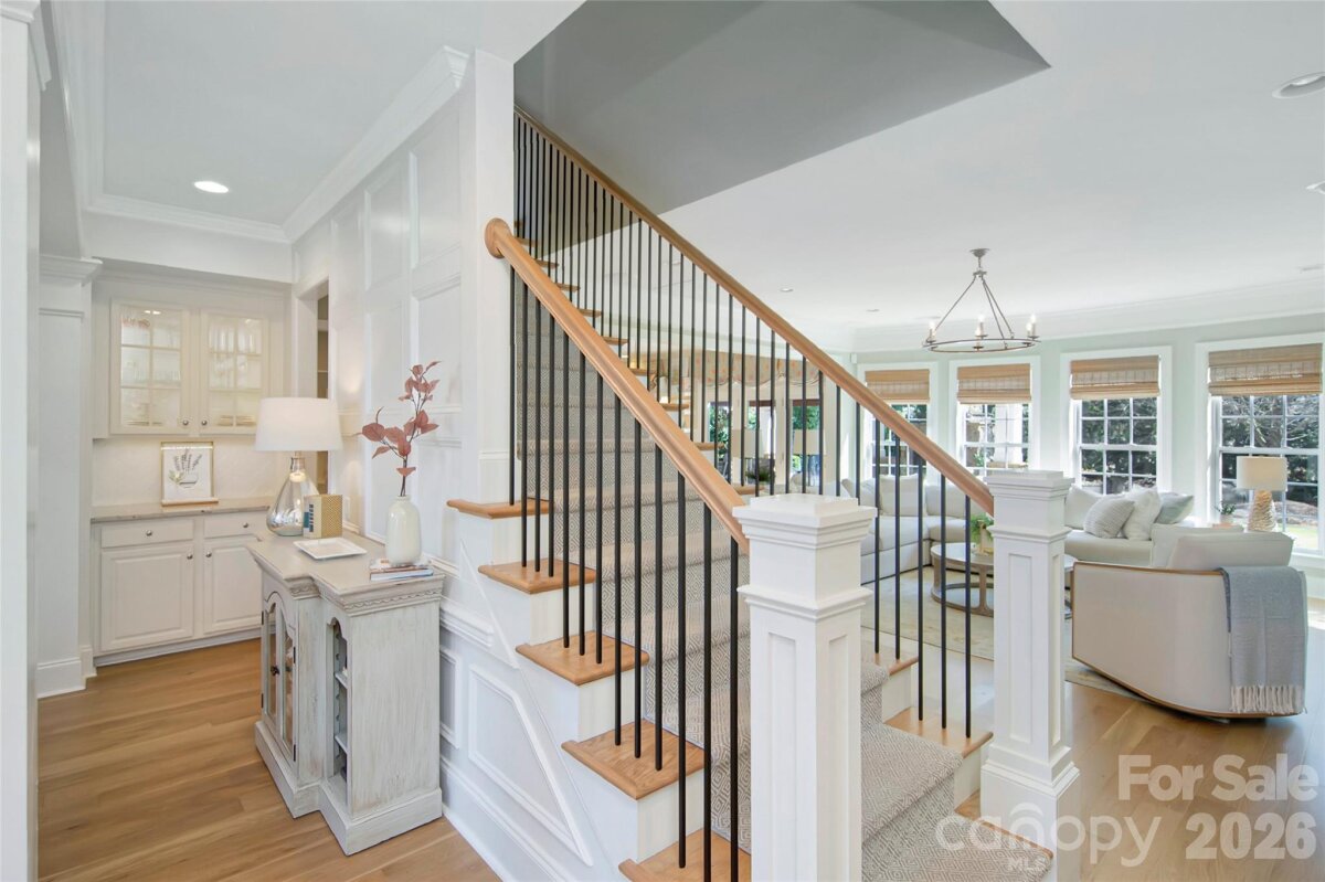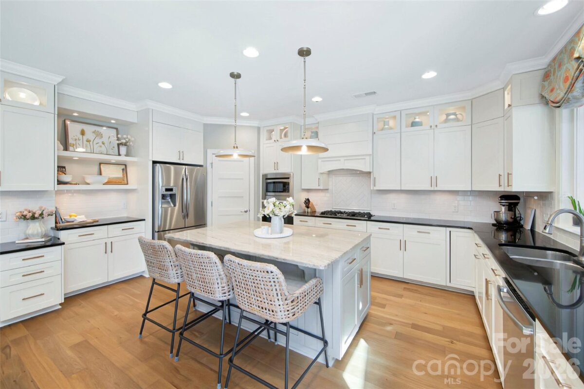 Beautifully designed home bathed in natural light, tucked away on a private cul-de-sac lot within walking distance to elementary school in desirable Chimneys of Marvin. This professionally designed interior has incredible upgrades with 5 inch wide plank engineered hardwood floors, updated bathrooms, updated lighting, molding & built-in features throughout the home and a magnificent outdoor space with outdoor cooking area and fireplace. The open-concept kitchen is perfect for gatherings, featuring stainless steel appliances, white cabinets, pantry, granite countertops, vented cooktop & butlers pantry, leading to a beautifully adorned dining room. The main level also offers a spacious office and guest bedroom with a full bath. Upstairs find a large primary bedroom, 3 secondary bedrooms, one with ensuite bath and two connected by a Jack-and-Jill bath and a large bonus room. The spacious primary bathroom has been thoughtfully updated w/large format tile for floor & shower, seamless glass enclosure and updated vanity and countertops. The third level offers a versatile flex space with a full bathroom, ideal for use as a bedroom, media room, exercise room, or additional living area. All of this conveniently located to...Everything!