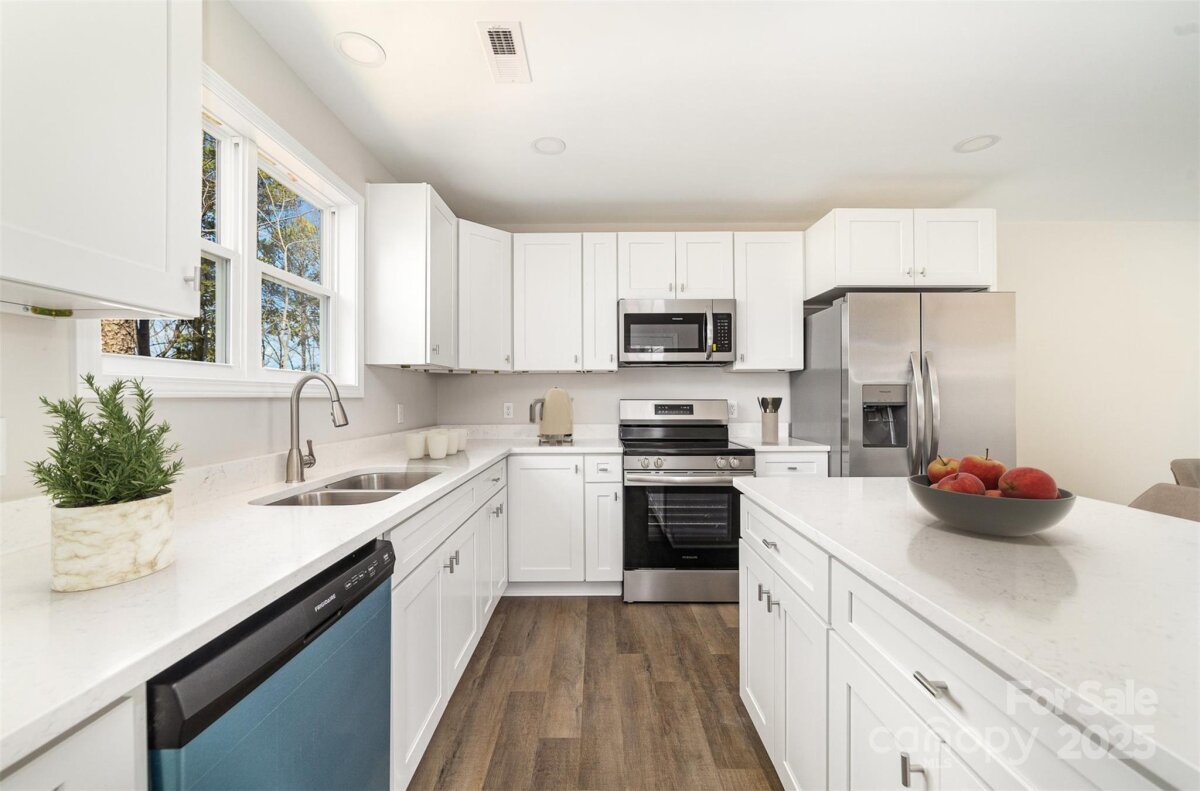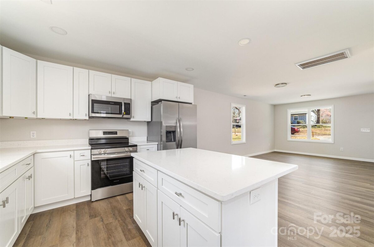 This charming 2 story home offers a cozy yet spacious feel with its open floor plan. It features 3 bedrooms and 3 full bathrooms. The Great Room and Kitchen seamlessly blend into the open living space, with a conveniently located laundry area just steps from the kitchen. The kitchen boasts Quartz countertops, sleek white cabinets, and stainless-steel Frigidaire appliances. A generously sized additional room on the main floor provides flexibility-it can serve as a dining room large enough for a grand table, a home office, or a bedroom, whether as a master or secondary suite. Upstairs, you'll find the primary bedroom suite along with a secondary bedroom and a separate full bath. Designed for both comfort and functionality. Durable and hypoallergenic LVP flooring runs throughout every room, offering easy maintenance. A small back deck overlooks a scenic wooded area, perfect for relaxation. Additionally, the tall crawl space provides ample storage for gardening tools or other essentials. Just 5 minutes from City Lake Park, you’ll love weekend fishing, boating, golfing, and family picnics. No HOA, no hassle—just your perfect new home!