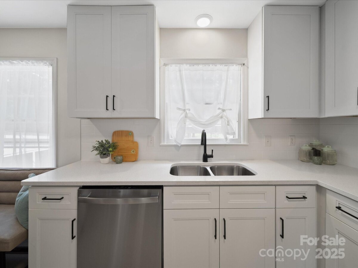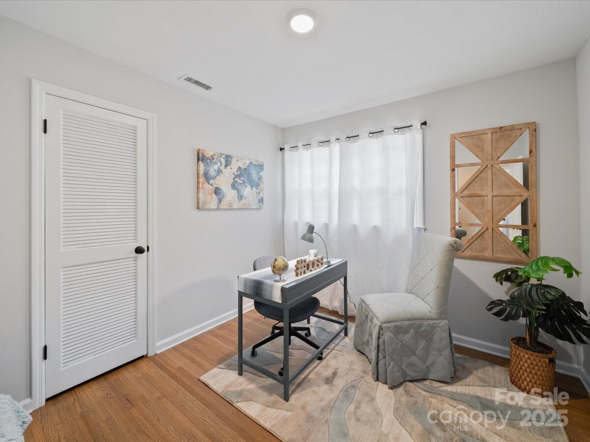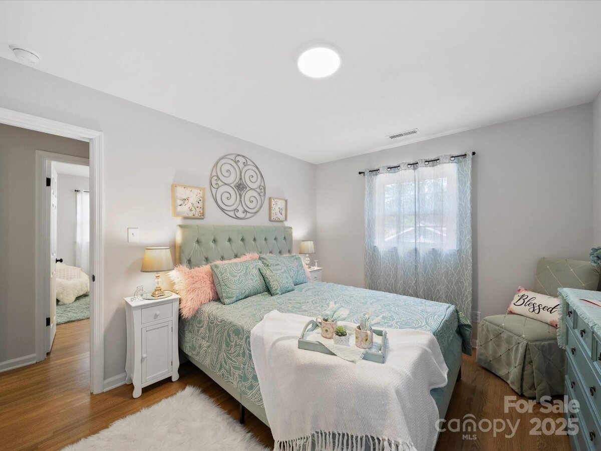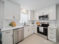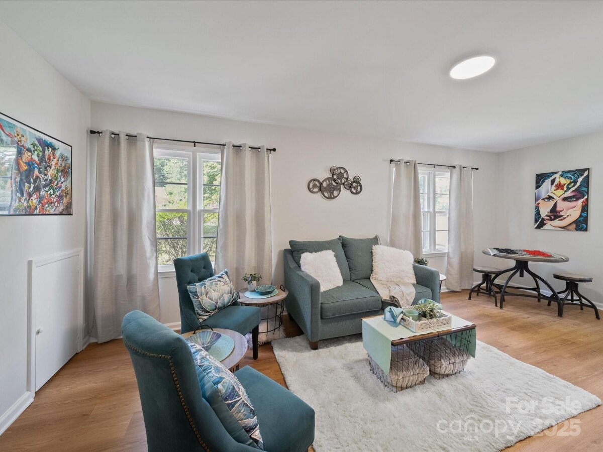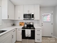 100% financing available for qualifying buyers! This mid century home has kept the charm of its history but added more functionality. Exterior freshly painted in Sherwin Williams Greek Villa white w/new custom shutters. The original hardwoods on the main & upper levels were sanded & refinished beautifully. LVT was added to the kitchen & primary bath. LVP was added to the primary bedroom and lower-level family room. Kitchen boasts new shaker cabinets w/quartz counters, new stainless appliances & an open flow between kitchen and formal living room. Kitchen is staged with a lovely banquette that demonstrates you can seat 6 easily in this cozy corner. Access to the parking is located off the kitchen with an awning for cover over the side porch. Upper level has three bedrooms, one with two closets, & an updated full bath to be shared by upper bedrooms. One bedroom on the upper level is staged as an ideal office. Lots of closets & storage. Lower level boasts a primary with built ins for closets, including abundant drawers. Primary bath has lovely upgrades including glass shower door. Off the primary you will be delighted with new sliders that lead to a large, screened porch with seating for enjoying the deep, maturely shaded rear yard, & a dining space for outdoor meals. Two doors off the screened porch let you access the covered parking spaces or step off the rear and walk around to a private courtyard staged with a firepit just off the family room. The family room area has space for gaming, a nice television viewing area, and a custom drop zone. The laundry closet is located within the family room space. This could also serve as an excellent home office for those who telecommute! An exit to the side yard with a private courtyard is covered by an awning. The lot is almost 1/2 acre. The rear yard has a storage building that is sold as is to house your lawn and garden items. The former owner added a chain link fence to divide the lot behind the shed for a garden. The lot goes back to the privacy fence of the neighbor, well beyond the initial fence. This home was loved by the same family from 1965 until 2025 when this seller bought it because he saw how lovely it could be, once again. Come and view this historical home, less than 1/2 mile from the Plaza Midwood corridor and steps away from the public transit system that stops on this road. FHA eligible as it has been 90 days since this deed recorded, making it super affordable to finance. No HOA.