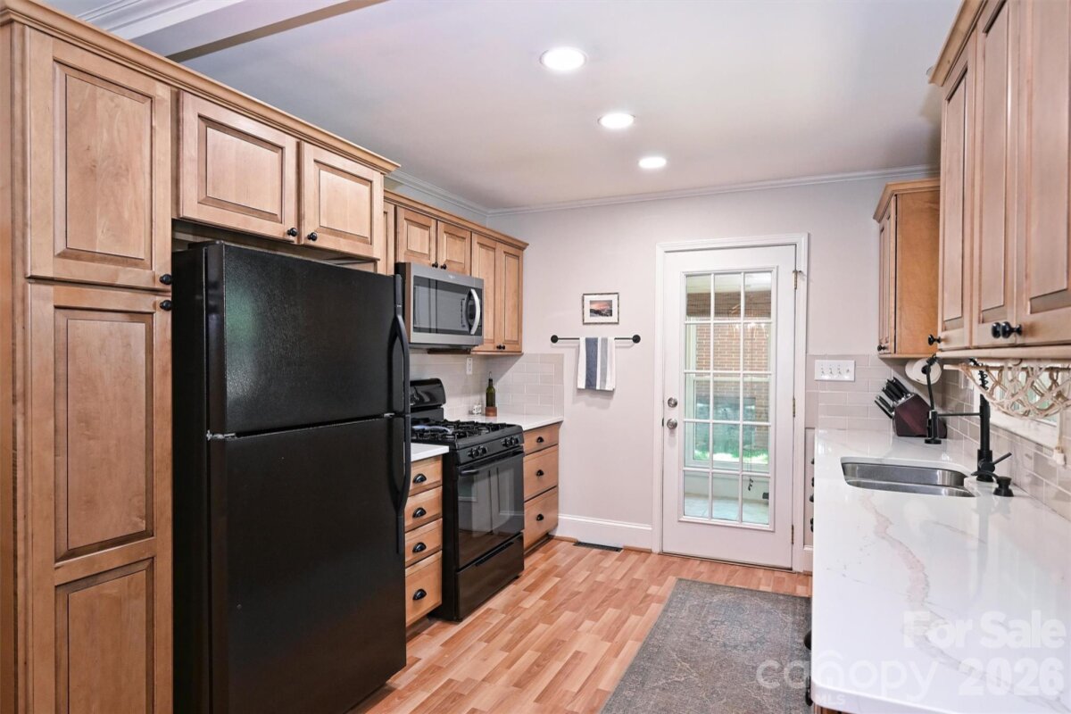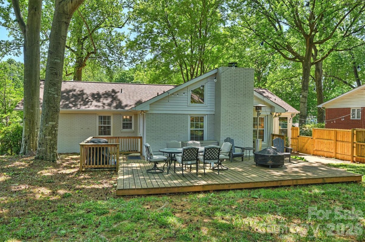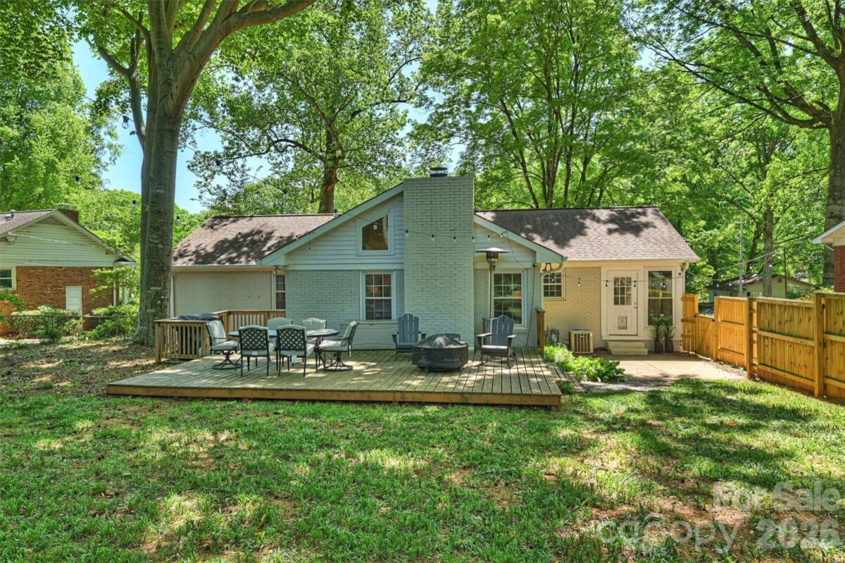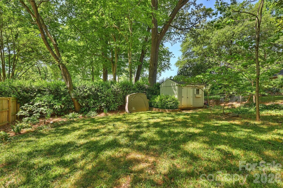 Charming Montclaire brick ranch nestled under a canopy of towering shade trees, complete with a fenced, park-like backyard that’s perfect for entertaining or relaxing! Step inside to a welcoming foyer and a sunken living room, both featuring gleaming hardwood floors. The updated kitchen shines with Kraftmaid maple cabinets, sleek Quartz countertops, and contrasting black appliances, creating a stylish yet functional space. The vaulted family room steals the show with its stunning stone fireplace and easy access to the backyard. This home offers three updated tiled baths, including a half-bath in the primary bedroom, a hall bath, and a second full bath conveniently located off the family room. You’ll also adore the cozy sun porch—ideal for morning coffee or evening unwinding—and the tiled laundry room with ample storage. Recent updates, including painted brick, new windows, and a gardening shed, add to the home’s appeal. Located near the Greenway in Charlotte, you’ll enjoy easy access to outdoor recreation while being just minutes from SouthPark’s premier shopping and dining, Uptown, and the Light Rail. This is the perfect blend of charm, comfort, and convenience—don’t miss it!