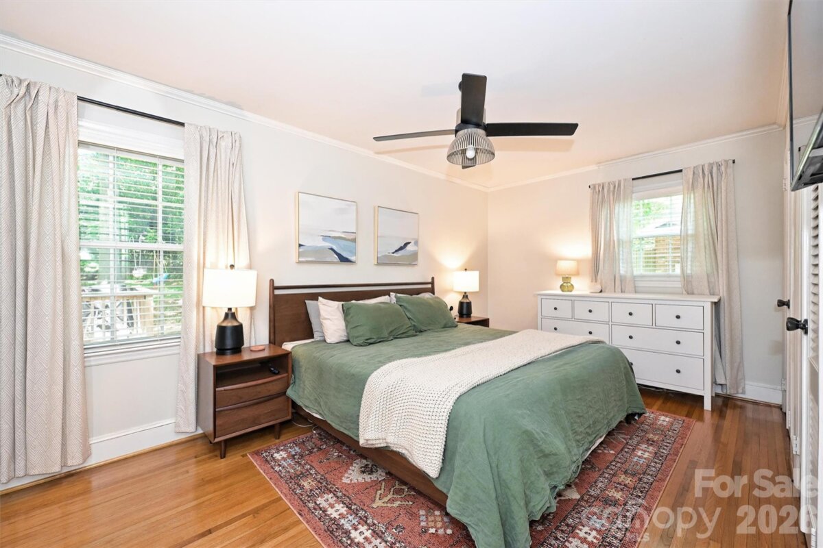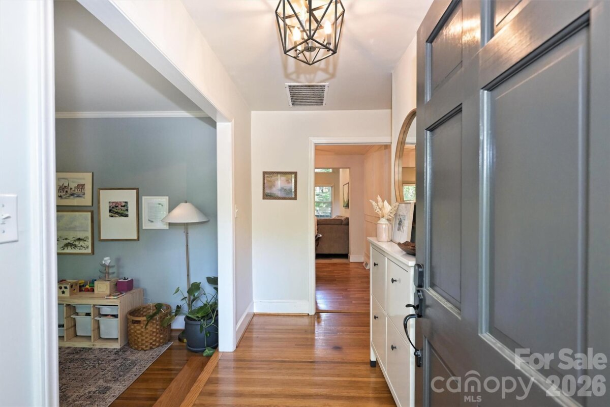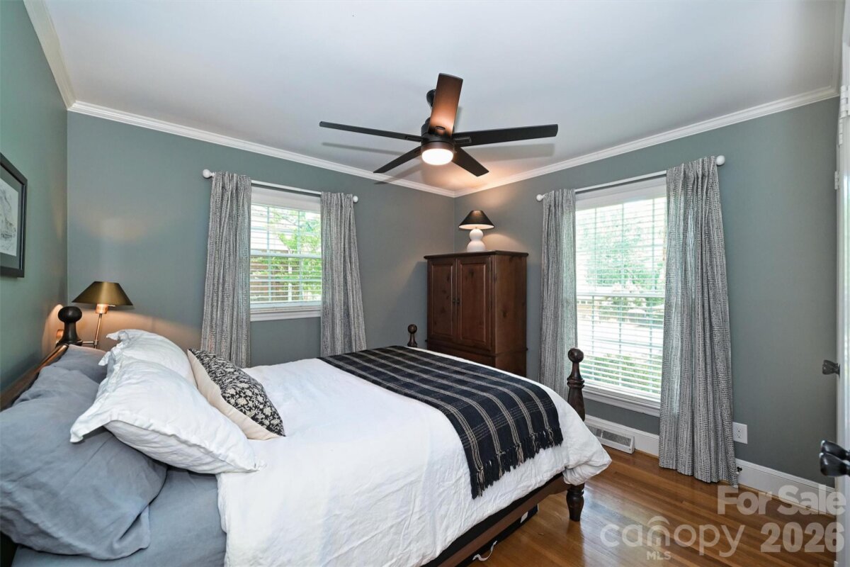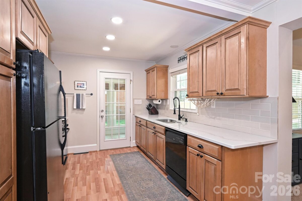 Charming Montclaire brick ranch nestled under a canopy of towering shade trees, complete with a fenced, park-like backyard that’s perfect for entertaining or relaxing! Step inside to a welcoming foyer and a sunken living room, both featuring gleaming hardwood floors. The updated kitchen shines with Kraftmaid maple cabinets, sleek Quartz countertops, and contrasting black appliances, creating a stylish yet functional space. The vaulted family room steals the show with its stunning stone fireplace and easy access to the backyard. This home offers three updated tiled baths, including a half-bath in the primary bedroom, a hall bath, and a second full bath conveniently located off the family room. You’ll also adore the cozy sun porch—ideal for morning coffee or evening unwinding—and the tiled laundry room with ample storage. Recent updates, including painted brick, new windows, and a gardening shed, add to the home’s appeal. Located near the Greenway in Charlotte, you’ll enjoy easy access to outdoor recreation while being just minutes from SouthPark’s premier shopping and dining, Uptown, and the Light Rail. This is the perfect blend of charm, comfort, and convenience—don’t miss it!