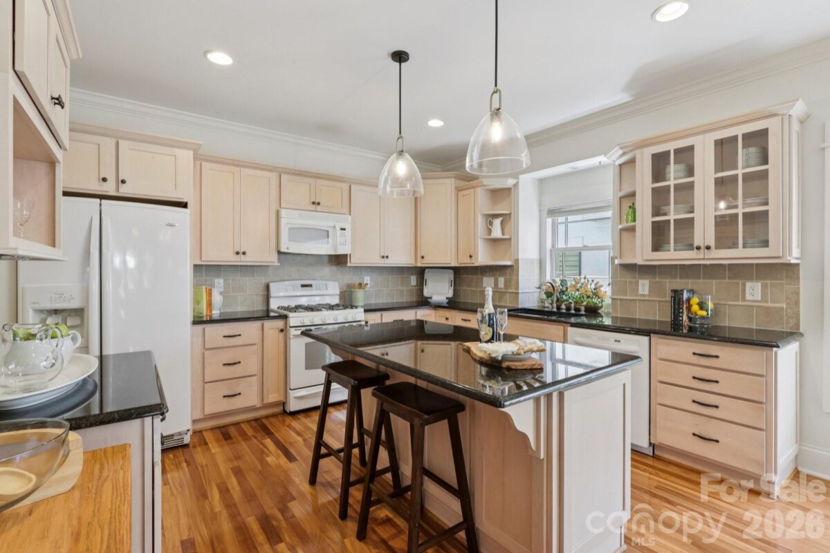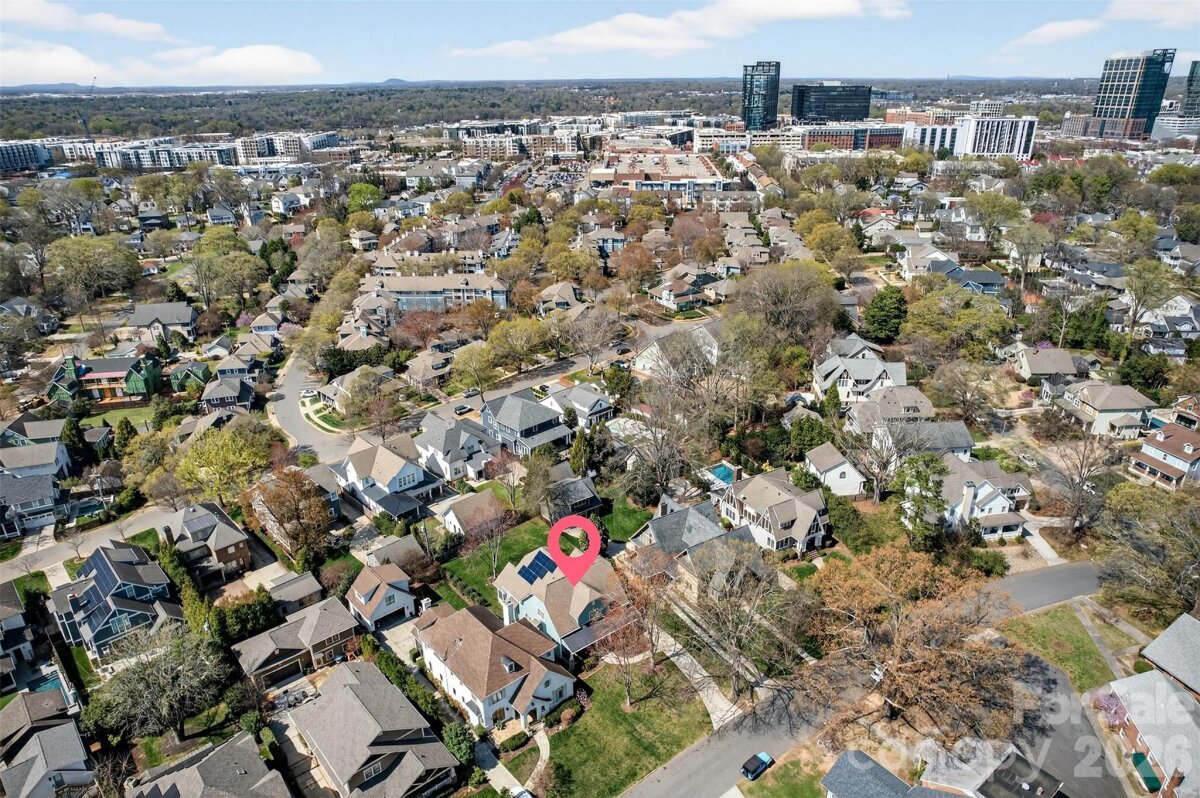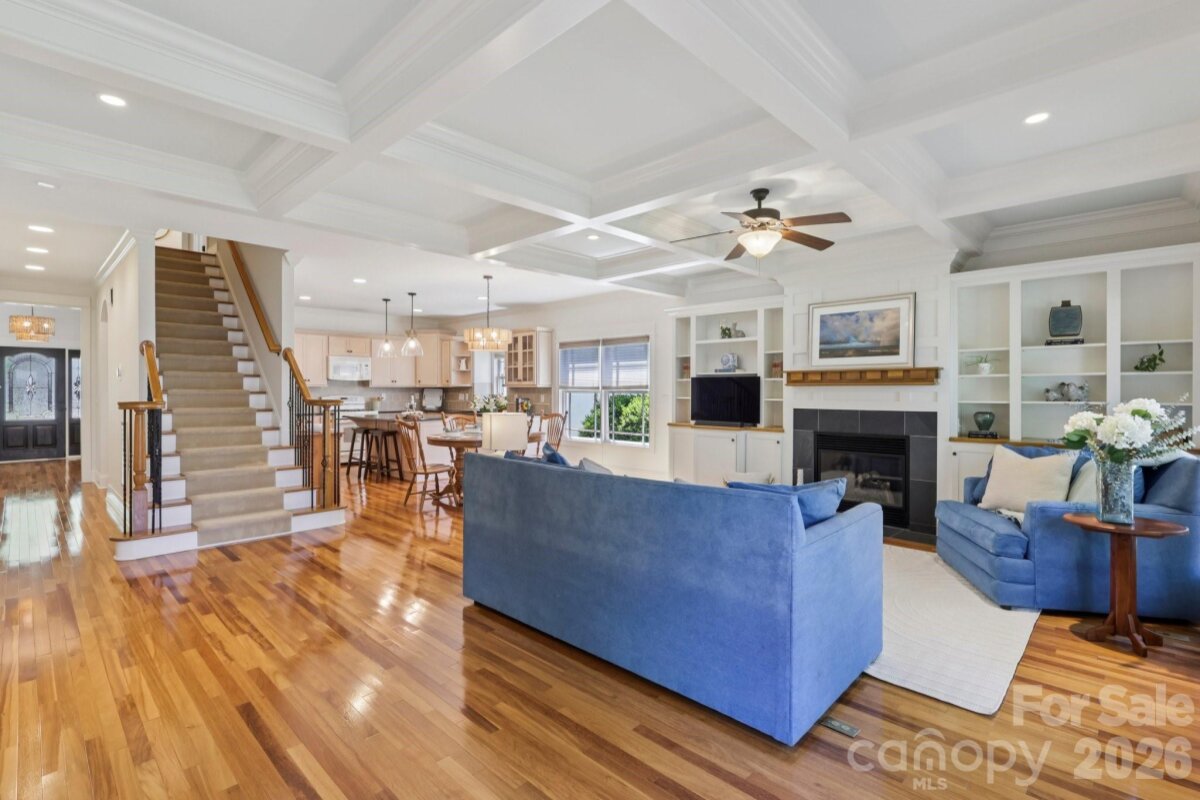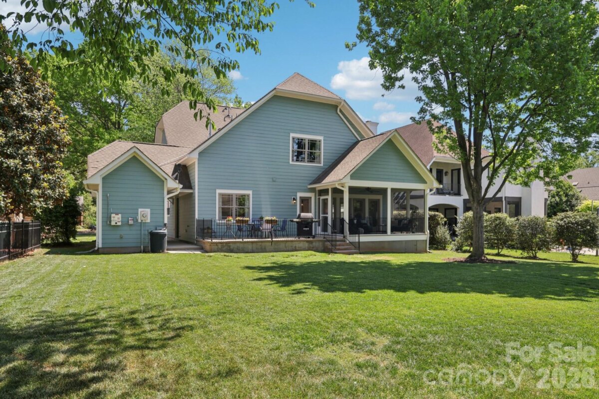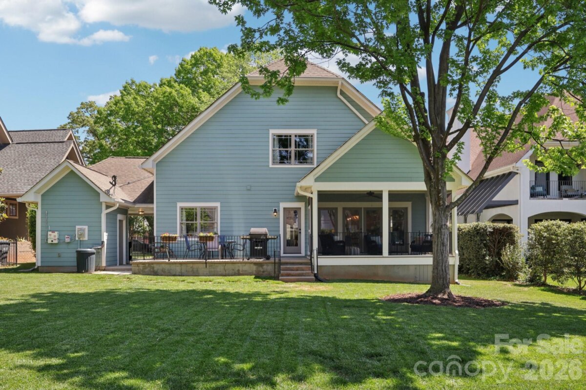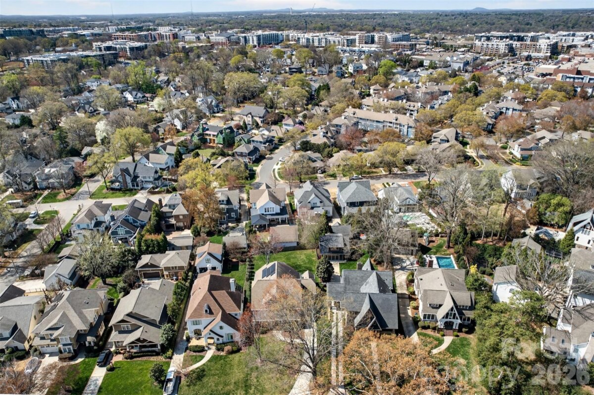 Welcome to 2216 Springdale Avenue - a beautifully crafted home where timeless design meets modern efficiency in the heart of Dilworth. Built in 2007 and offering over 3400 sq.ft., this residence seamlessly blends thoughtful detail, durable construction and a warm, livable flow. Natural sunlight fills the home throughout the day, highlighting the golden teak floors, rich millwork and custom trim, with Energy-conscience enhancements. The main level features an inviting layout with the primary suite, private bath and spacious walk-in closet. A second main-level guest suite creates a perfect arrangement for multigenerational living, long-term guests, or a dedicated home office with privacy. The kitchen includes solid-surface countertops, and transitions seamlessly into the family room, where coffered ceilings, built-ins and a gas fireplace create a warm gathering space. This area opens into a screened porch and a beautifully designed outdoor living area, including a stamped concrete patio and a generous, level backyard. Upstairs, two additional bedrooms, a large bonus room, and excellent walk-in and attic storage. Outside, the property offers a detached storage room and covered bay carport. The rocking-chair front porch is wired for surround-sound-ideal for quiet morning or evening entertaining. This home has been pre-inspected and meticulously maintained, offering beauty, efficiency, storage, and versatility in one of Charlotte's most coveted neighborhoods.