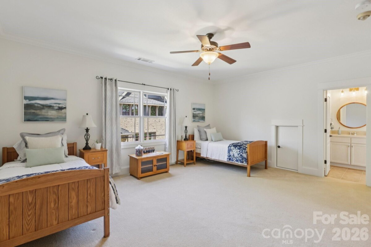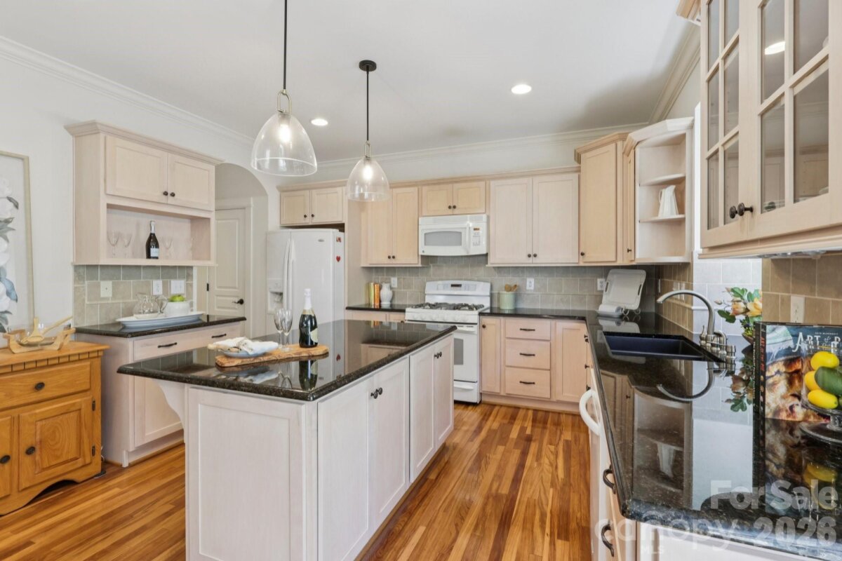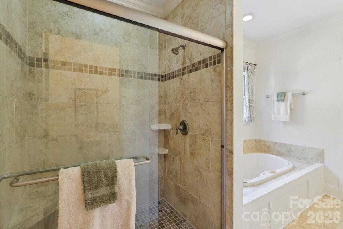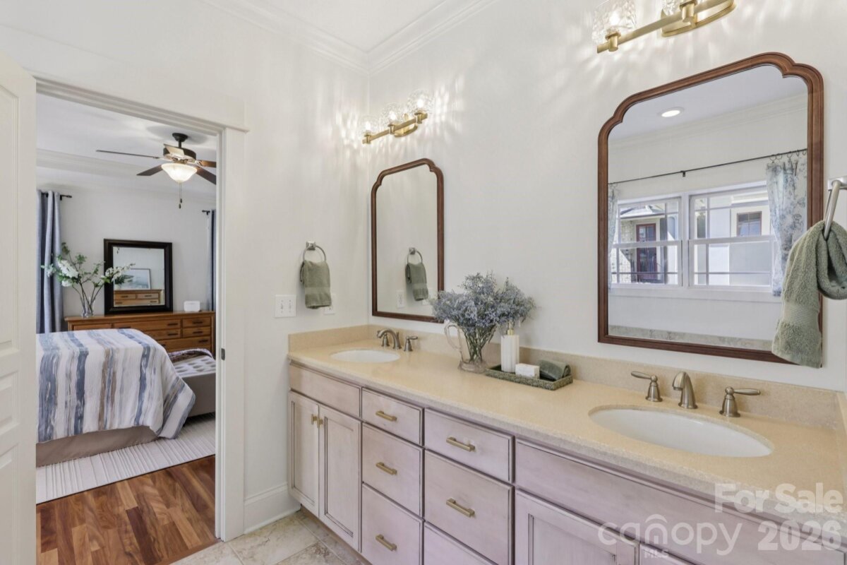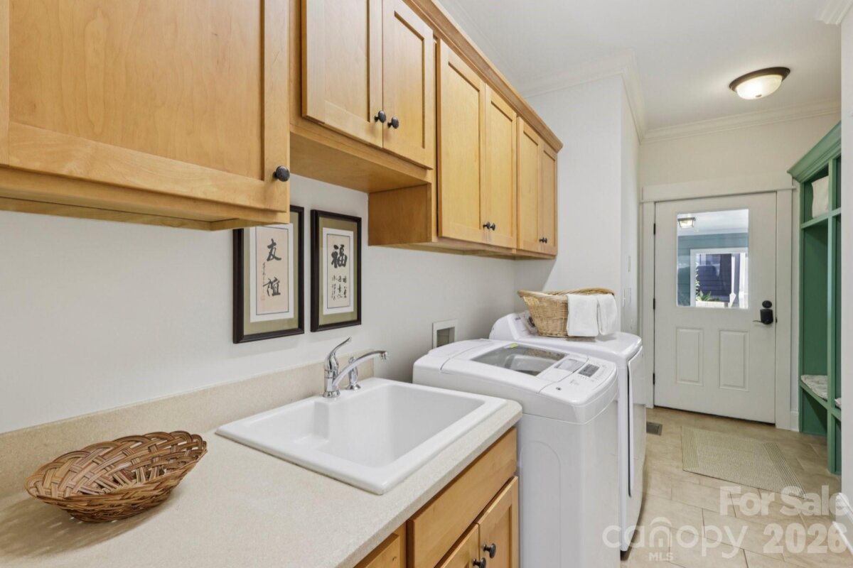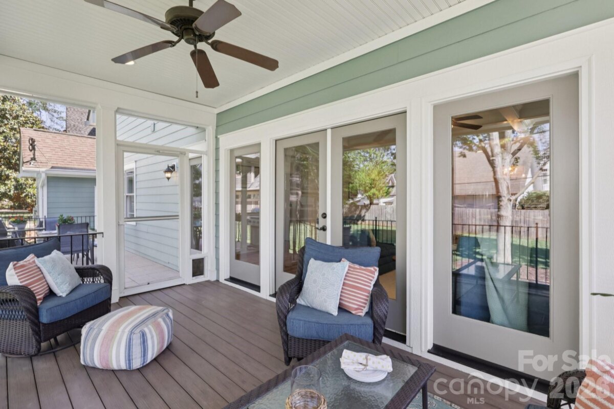 Welcome to 2216 Springdale Avenue - a beautifully crafted home where timeless design meets modern efficiency in the heart of Dilworth. Built in 2007 and offering over 3400 sq.ft., this residence seamlessly blends thoughtful detail, durable construction and a warm, livable flow. Natural sunlight fills the home throughout the day, highlighting the golden teak floors, rich millwork and custom trim, with Energy-conscience enhancements. The main level features an inviting layout with the primary suite, private bath and spacious walk-in closet. A second main-level guest suite creates a perfect arrangement for multigenerational living, long-term guests, or a dedicated home office with privacy. The kitchen includes solid-surface countertops, and transitions seamlessly into the family room, where coffered ceilings, built-ins and a gas fireplace create a warm gathering space. This area opens into a screened porch and a beautifully designed outdoor living area, including a stamped concrete patio and a generous, level backyard. Upstairs, two additional bedrooms, a large bonus room, and excellent walk-in and attic storage. Outside, the property offers a detached storage room and covered bay carport. The rocking-chair front porch is wired for surround-sound-ideal for quiet morning or evening entertaining. This home has been pre-inspected and meticulously maintained, offering beauty, efficiency, storage, and versatility in one of Charlotte's most coveted neighborhoods.