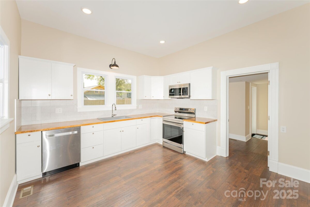 Originally built in 1910 but revitalized in 2025! This home boasts historic touches that complement the 10 foot ceilings. Located on a quiet street near Gibson Mill and downtown Concord, you won't have to go far to meet your needs. The full restoration features original stained ceilings and trim throughout. Electrical, plumbing and HVAC are just a few of many items that have been updated. The open floor plan kitchen offers dimmable recessed lighting, a custom butcherblock countertops along with a new appliances. Enjoy solace in the large back yard with a brand-new privacy fence. Brand new concrete driveway and sidewalk! All the floors have been replaced and are fresh. Drop in and take a look at this affordable, charming home that has been rejuvenated! This house is the definition of move in ready. Hurry before it is too late and you miss out on this beautiful home! Pictures do not do this one justice.