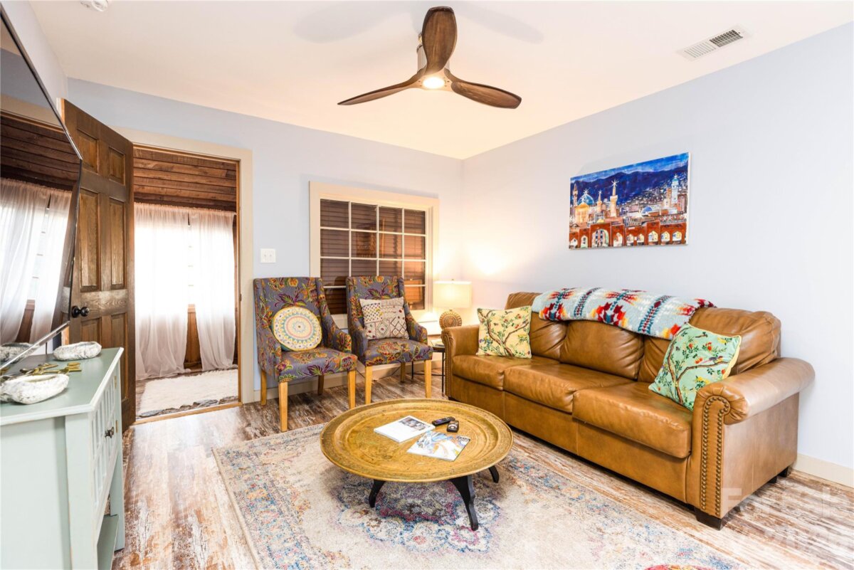 Live in Color at the Bohopad — a one-of-a-kind retreat tucked away in the South Charlotte/Matthews area and zoned for some of the city’s top-rated schools. Fully gutted to the framing and renovated to code with permits in 2017, the home features new HVAC and ductwork, all-new electrical wiring, new plumbing throughout, new drywall, new flooring, and updated framing where needed. The result is a thoughtfully rebuilt home offering both peace of mind and unforgettable character. Inspired by global travels and cultural roots, the Bohopad was intentionally designed to evoke warmth, creativity, and a rejuvenating energy. Lively colors, natural wood finishes, and curated design details create a space that feels uplifting, grounding, and truly unique. With no HOA and a highly convenient location, this property also shines as an investment opportunity. It has operated successfully as a short-term rental since 2017, earning an almost perfect rating with hundreds of happy guest reviews — a testament to its charm, functionality, and appeal. A fully furnished sale is available for buyers seeking a turnkey personal home or ready-to-go income property. A rare blend of style, quality, and versatility, the Bohopad offers a hidden-getaway feel in one of Charlotte’s most desirable pockets. Please do not pull into the driveway or walk around the house without an appointment. Agent has part ownership stake.