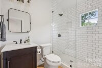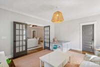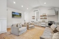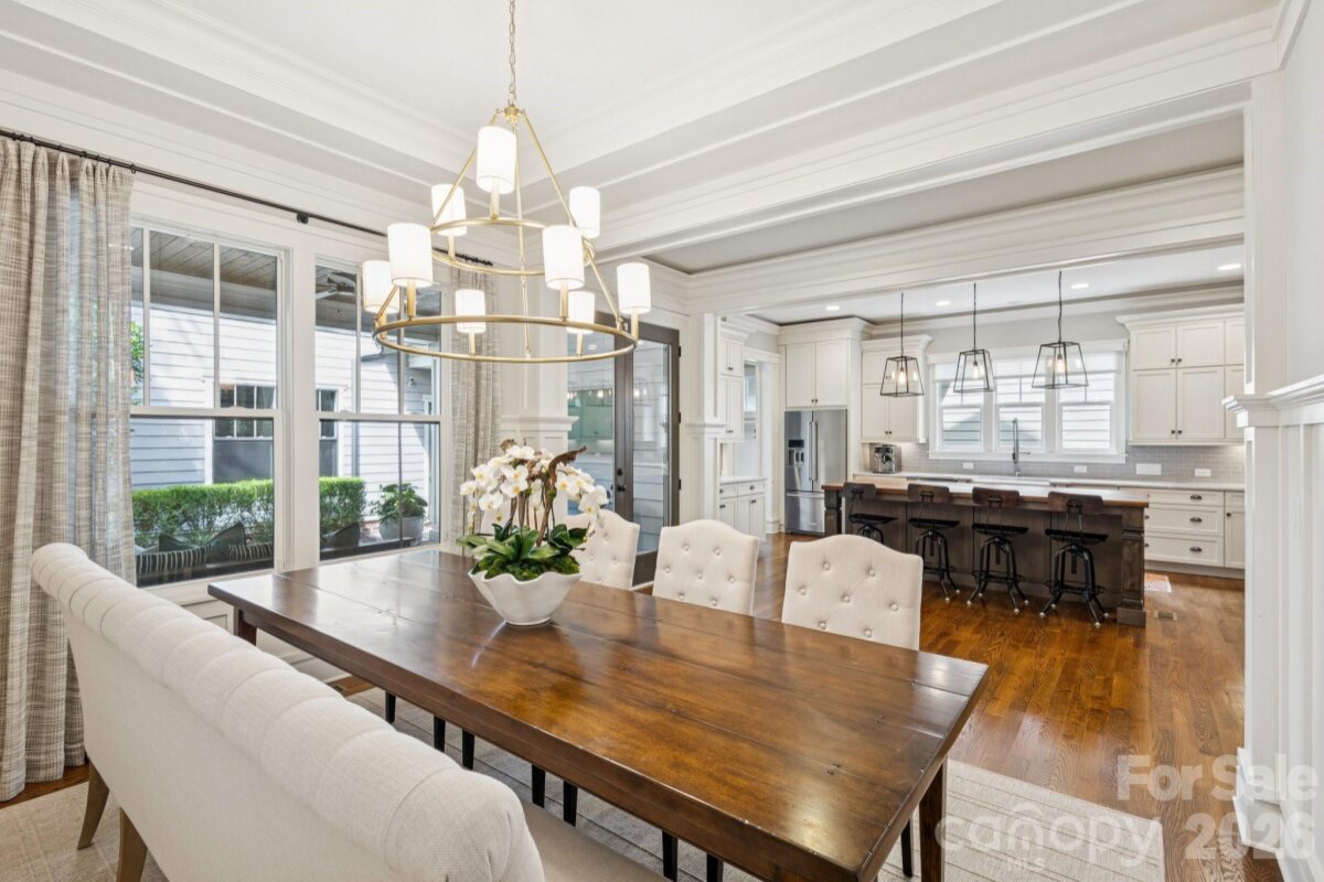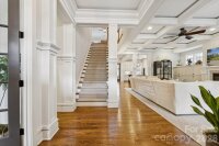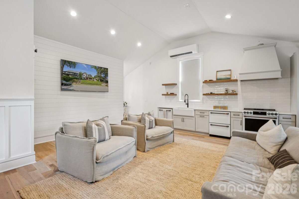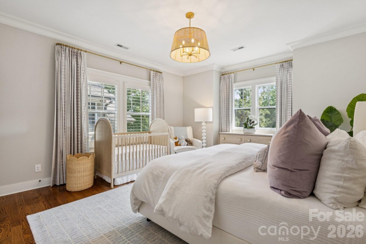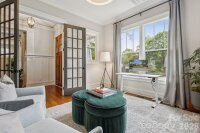This custom-built Craftsman-style residence has 5 bedrooms and 4 baths. It is Located in the heart of Elizabeth, one of Charlotte’s most walkable and historic neighborhoods. Known for tree-lined streets, character homes, and close proximity to Uptown Charlotte. Just minutes from dining, shopping, parks, Greenway trails, Midtown, Plaza Midwood, Atrium Health and Carolinas Medical Center. The home includes two primary suites, one on the main level and one upstairs, along with spacious secondary bedrooms with walk-in closets. The layout provides flexible living with guest accommodations, office options, and multiple indoor and outdoor gathering areas. Inside, refined craftsmanship includes ten-foot ceilings, oak hardwood floors, designer lighting, and custom cabinetry throughout. Natural light fills the living spaces through well-placed windows and French doors. The foyer opens into a spacious great room with a fireplace, built-in cabinets, coffered ceilings, and detailed woodwork. French doors provide access to the front porch and create a strong connection between indoor and outdoor living.Near the foyer is a private office or guest bedroom with access to a full bath and powder room. The chef’s kitchen features KitchenAid range, retractable blinds, marble countertops, custom cabinetry, beverage refrigerator, and an oversized center island. The kitchen flows into the dining and living areas, creating an open layout ideal for everyday living and entertaining. Glass doors open to a covered deck alcove with a king-size hanging bed and wall-mounted television, extending the living area outdoors. A pantry and mudroom provide additional storage and a convenient transition space between the kitchen and the outdoor courtyard. The main-level primary suite includes a custom walk-in closet and private bath. Upstairs, a large central media loft connects four bedrooms, including the second primary suite with a spacious bath. Secondary bedrooms are generously sized and include walk-in closets. Laundry rooms are located on both the main and upper levels.Outdoor living includes several comfortable gathering areas. A covered courtyard features a stone gas fireplace and connects to a landscaped backyard with artificial turf, attractive shrubbery, privacy fencing providing a safe place to play. A wraparound back porch leads to a breezeway connecting the home to a detached two-car garage. Above the garage is a fully equipped apartment. The suite includes a kitchen, bath, laundry, and living space, ideal for guests, office, nanny or rental income. An elevated front yard with a stone stairway leads to the front porch overlooking the neighborhood.This home offers a rare opportunity to own a spacious and flexible Craftsman-style residence with guest quarters in one of Charlotte’s most desirable and connected neighborhoods.