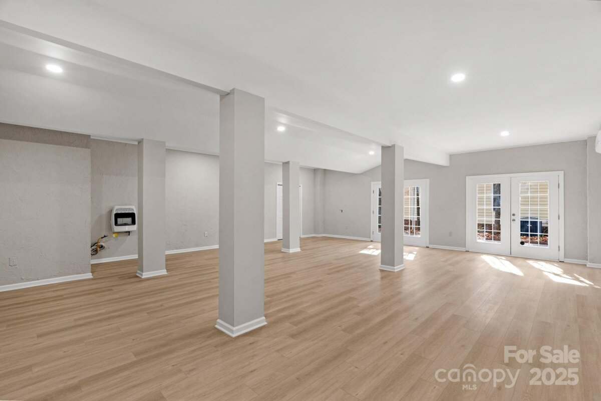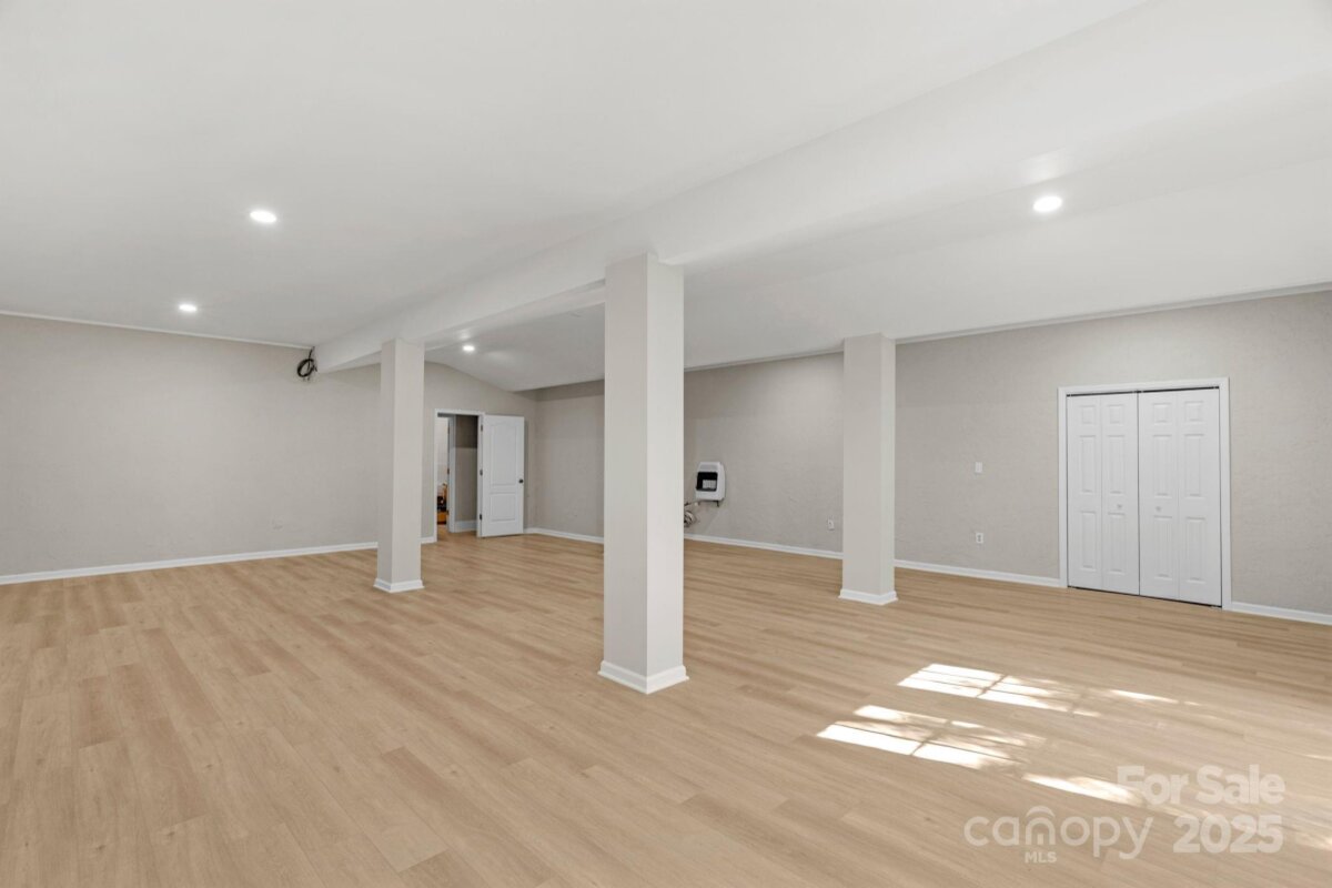Beautiful 3-bedroom 2-bath 1-story home with a walk-out fully finished basement. Located in Stafford Park, an intimate neighborhood of Rock Hill. This home has been freshly painted, features new flooring upstairs, and boasts a recently finished basement, complete with a new mini—split system and a gas heater. This home is move-in ready! Level wooded lot with a fully fenced-in backyard that is shaded and private. A 316 square foot storage space in the basement for all the Christmas or sports gear. 1121 square foot Basement could be used as a giant office, rec room, sports watching venue, let your imagination run wild. Upstairs has a split bedroom plan separated by an Open Family room and dining area with vaulted ceilings for family get-togethers. Homes in this tight-knit neighborhood do not come up for sale very often. Jump on this one right away.
