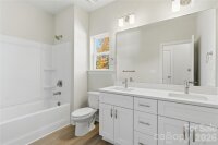 A charming front porch welcomes you to this brand-new home, complete with a builder’s warranty for peace of mind. Step through the front door into an open-concept living area designed for entertaining. The modern kitchen features quartz countertops, a spacious island, and an adjacent flex space perfect for a home office or play area. A convenient half bath and attached garage complete the main floor. Upstairs, the primary suite offers a generous walk-in closet and a luxurious ensuite bath with dual quartz vanities and a glass-enclosed shower. Two additional bedrooms and a large dual-vanity secondary bath provide plenty of space for loved ones or guests. Enjoy outdoor living in your expansive backyard, free from HOA restrictions — perfect for future additions, gardens, or recreation. This home combines comfort, style, and convenience in one exceptional package.