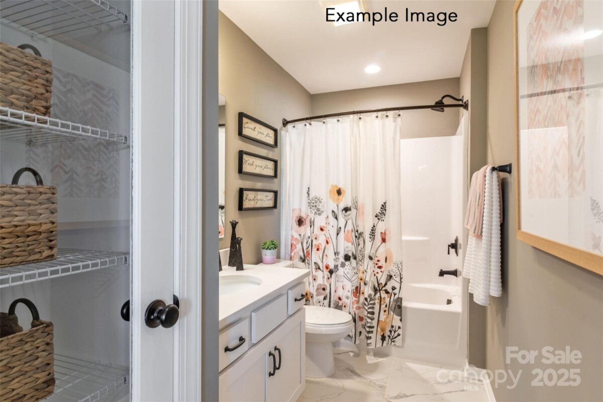 Enjoy first-floor living in this new 1.5-story home in Gastonia, with a blend of function, comfort, and style. The first floor has all the main living space, and upstairs is a spacious Rec Room, secondary bedroom and bath, plus unfinished storage space. Off the foyer is a guest bedroom and bath plus a Flex room. Beautiful, open-concept living with abundant windows for natural light; with the kitchen overlooking the dining area and family room. Kitchen features quartz counters, tile backsplash, GE stainless steel split cooking appliances with a 36" gas cooktop and extraction hood, with dark graphite-stained cabinets at the perimeter and white cabinets at the island. Off the kitchen is a Butler's Pantry which is great for entertaining, and a walk-in pantry. The Family room boasts a vaulted ceiling and gas fireplace with side niche. Enjoy the weather from the rear covered porch! Premier Suite has a tray ceiling, walk-in closet, and bathroom with large tiled shower with semi-frameless glass, quartz counters, and 12x24" floor tiles. Full baths feature quartz counters and dark-stained cabinets. LVP flooring throughout most of the first floor, with oak treads on the stairs. The laundry room is tucked away off the mudroom, which features a built-in drop zone. Home includes energy-saving features of a tankless hot water heater and radiant barrier sheathing. Community pool and tot lot! Easy access to Uptown Charlotte and the airport.