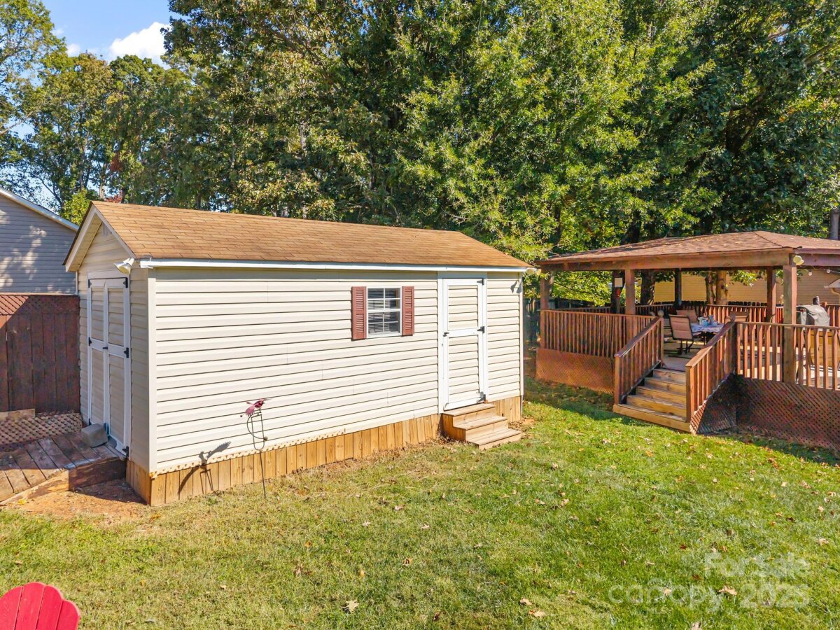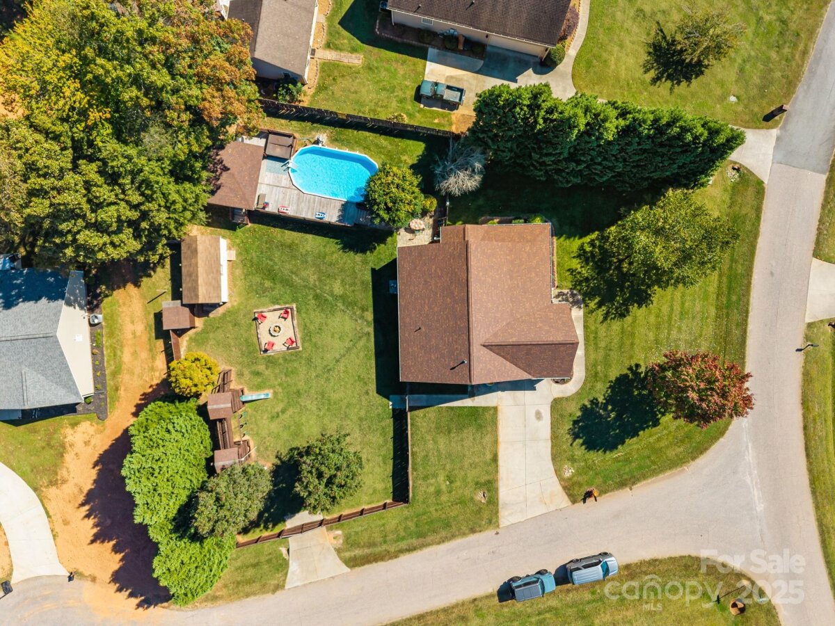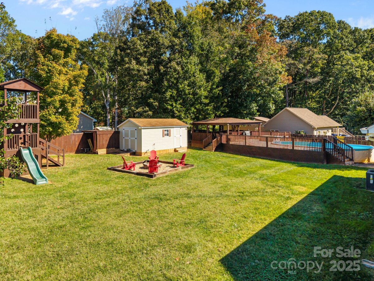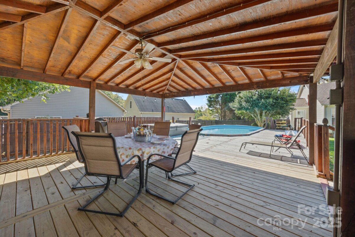 Charming 3-bedroom, 2-bath ranch with side-load garage nestled on a spacious half-acre corner lot in a peaceful country setting—No HOA - USDA Eligible! Enjoy relaxing on the wraparound porch or entertaining in the private, fenced backyard featuring a large above-ground pool with extensive decking (replaced 2024), a covered gazebo for shade, a hot tub, a jumbo, custom 3-tier playset, updated cozy fire pit (Nov 2024), and a 12x24 outbuilding with electricity—perfect for a workshop or extra storage. Inside, the kitchen shines with granite countertops, granite backsplash, and stainless steel appliances. All bedrooms are generously sized, featuring newer carpet. The primary suite offers two closets and a private bath. Major updates include a newer roof, HVAC, and water heater; septic tank inspected and pumped (May 2023); new electrical meter box (2024); garage door opener (June 2024); garage door electrical and springs replaced (June 2025); and several new window screens scheduled for installation (Nov 2025). Refrigerator, washer, and dryer convey.
