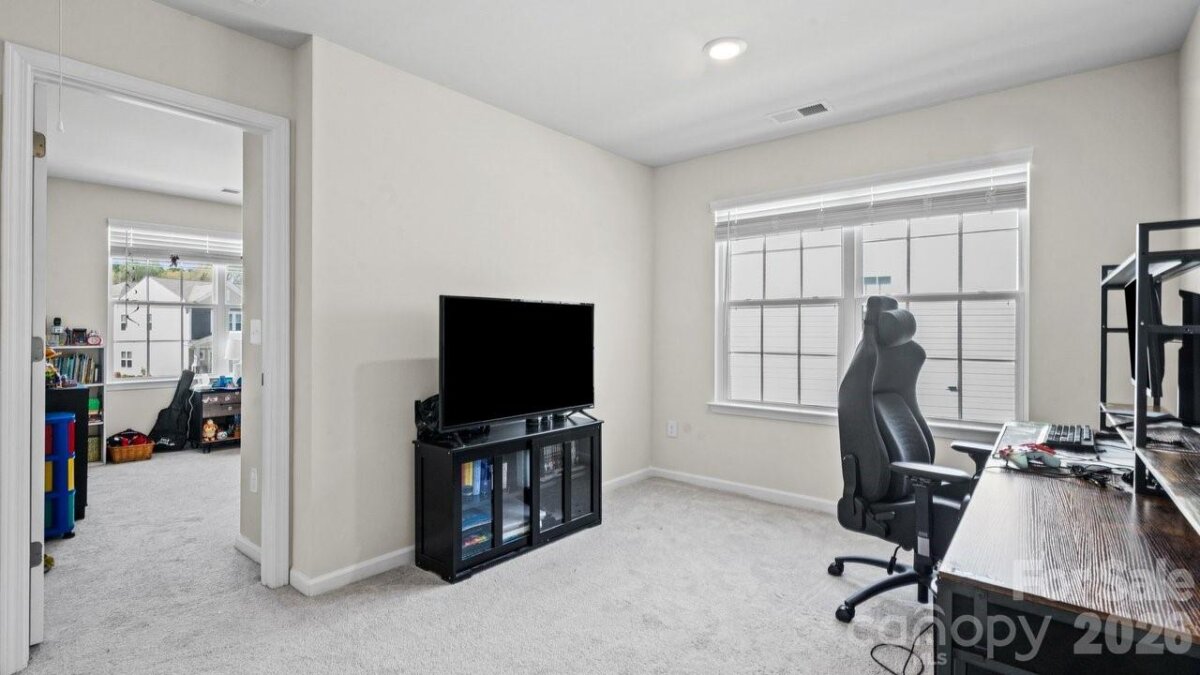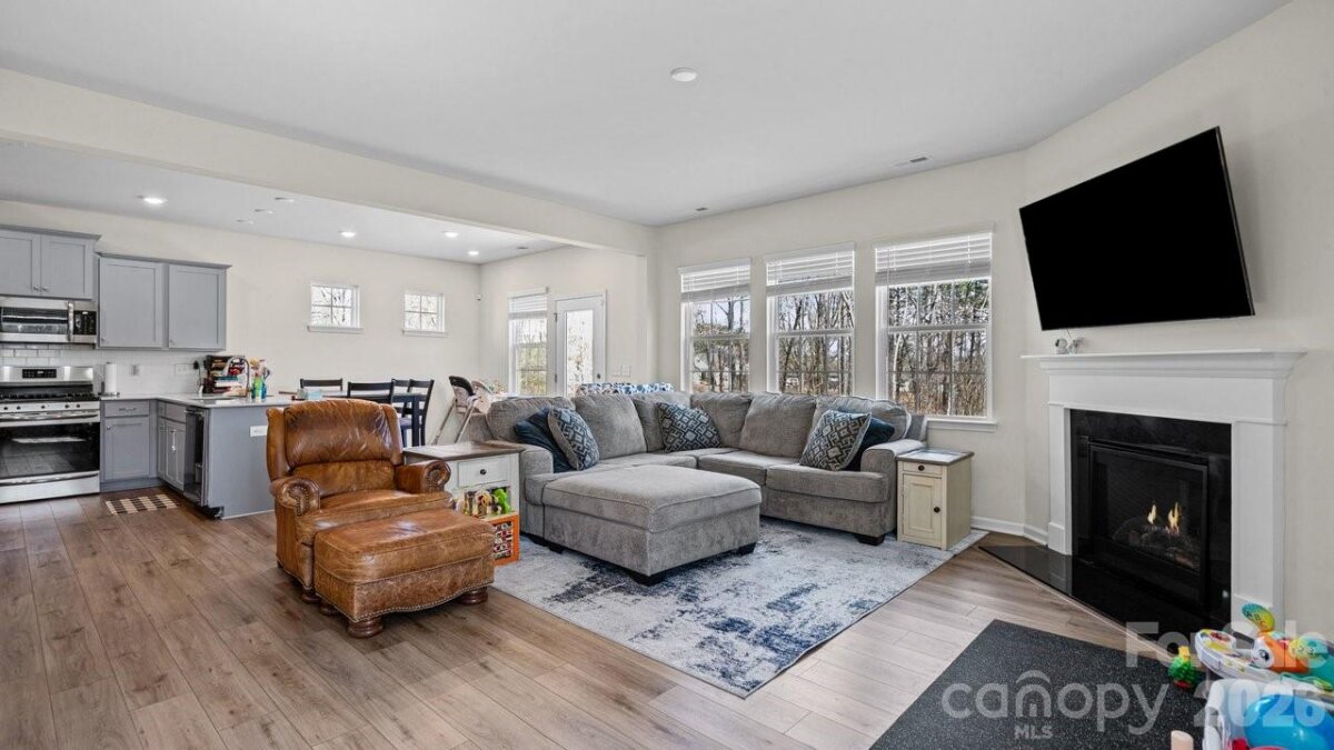 Welcome to this like new home in Gambill Forest, tucked away in a quiet cul-de-sac! This well maintained smart home offers a great mix of comfort and modern style. Step inside to an inviting open floor plan featuring durable LVP flooring throughout the main level, making it both stylish and easy to maintain. The livingroom features a cozy gas fireplace and flows right into the kitchen with quartz countertops, stainless steel appliances and plenty of cabinet space. Upstairs, you'll find a versatile loft that's perfect for a second living area, office or playroom, along with a spacious primary suite and two additional bedrooms. Enjoy quiet mornings and unwind in the evenings on the back patio, where you'll overlook a peaceful wooded setting that provides extra privacy and natural charm. This home is equipped with smart features including a Ring camera system, keypad entry, myQ garage system, and a Flo Smart Water Monitor and shutoff by Moen- providing both convenience and peace of mind. Gambill Forest offers fantastic amenities including an outdoor pool, clubhouse with fitness center, and walking trails. Located within Mooresville Graded School District and just minutes from downtown Mooresville, this home truly has it all!