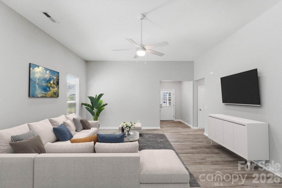 Featuring brand-new luxury vinyl plank flooring and fresh interior paint throughout, this beautifully maintained ranch in the sought-after Sutters Mill community is truly move-in ready. Light-filled spaces create a bright and inviting atmosphere, while the open-concept layout offers the perfect balance of everyday comfort and easy entertaining. A spacious kitchen with a large island anchors the home, creating a natural gathering space. The spacious primary suite offers a private retreat, complete with an en suite bathroom and generous walk-in closet. The split bedroom design provides both privacy and flexibility to suit a variety of needs. Step outside to a fully fenced backyard—perfect for relaxing, entertaining, or enjoying the outdoors. Neighborhood sidewalks lead directly to nearby shops, adding a level of convenience that enhances daily life. Whether you're seeking a low-maintenance home or simply looking for a functional and flexible layout, this home offers comfort and ease without sacrificing space or location. Conveniently located just minutes from I-77, with quick access to Charlotte, shopping, and Lake Norman State Park, you’ll also benefit from the continued growth and new retail and dining options emerging throughout Troutman.