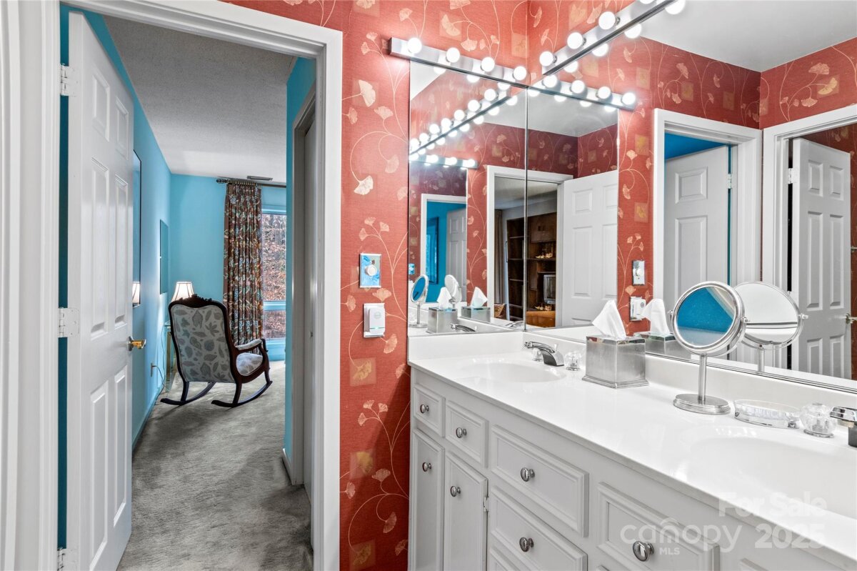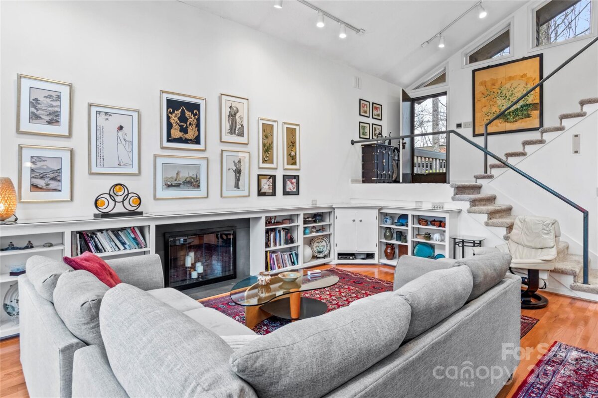 Nestled in a private cul-de-sac, this residence provides access to a serene lake, a charming gazebo, and scenic trails. The convenience of in-town living is reminiscent of a mountain chalet filled with natural light throughout. The main level boasts impressive soaring ceilings and a spacious living room adorned with numerous built-ins and fireplace adding a touch of elegance, while a wet bar enhances the entertaining experience. The main-level ensuite bedroom features a generously sized shower, a walk-in closet, and a convenient laundry room. The kitchen, equipped with granite countertops, seamlessly connects to the formal dining room. The upper level includes an office space, an additional bedroom, a full bath, and a sizable closet. A large wraparound deck, accessible from the kitchen, dining room, and living room, offers an inviting outdoor space. This property presents a wonderful opportunity for convenience, affordability and comfort.