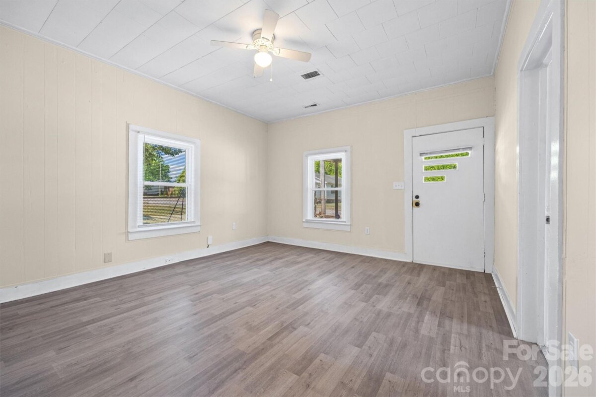 Welcome home to this charming ranch where all the heavy lifting has already been handled for you. Imagine starting your mornings with a quiet moment on the classic front porch before stepping inside to a bright, airy interior featuring fresh paint and sleek, modern flooring throughout. The kitchen shines with freshly painted cabinetry, stylish new hardware, and marble-inspired countertops, and you can move right in without a second thought since the refrigerator, washer, and dryer are all included. Out back, the expansive fenced-in yard offers a private retreat for pets or play, complete with a massive 14' x 15' storage building ready for your workshop or hobby gear. With a new roof (2024), HVAC (2023), furnace (2025), and a sealed crawl space, this home is ready to offer you total peace of mind from day one.
