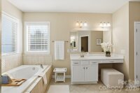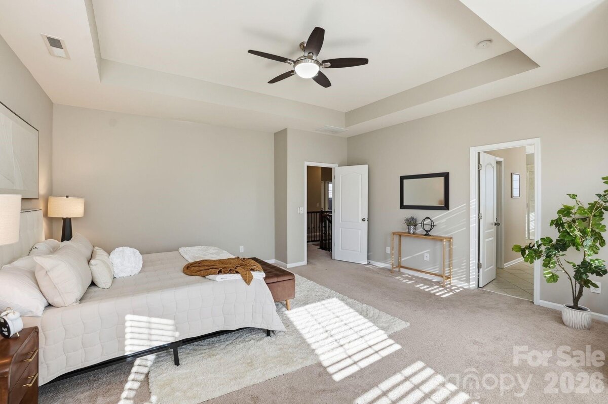 This stunning, move-in ready home welcomes you from the moment you arrive at the charming rocking chair front porch. Filled with natural sunlight throughout, this beautifully maintained property combines thoughtful design, modern updates, and exceptional indoor-outdoor living. The heart of the home is the gorgeous kitchen featuring granite countertops, stainless steel appliances, subway tile backsplash, a large island with breakfast seating, walk-in pantry, and a bright breakfast extension perfect for casual dining. Freshly painted kitchen cabinetry gives the space a clean, updated feel, along with a newer gas stove that adds both style and functionality. The flexible floor plan includes a highly desirable first-floor guest suite with a full bath, ideal for visitors or multigenerational living. Upstairs you will find a spacious loft or bonus room and a convenient second-floor laundry room, with washer and dryer conveying. The expansive owner’s suite offers a private retreat with a tray ceiling, cozy sitting area, two generous walk-in closets, soaking tub, frameless glass shower, and separate his and her vanities. Significant recent renovations elevate this home even further. A brand-new 28x14 extended covered patio creates an incredible outdoor living space, perfect for entertaining or simply relaxing while enjoying the peaceful backdrop of Hawks Creek and protected woods. The concrete has been extended to enhance the backyard living area, offering ample room for gatherings and outdoor enjoyment. The exterior upgrades continue with a new fence in the backyard and along the side, providing privacy and security, as well as a new irrigation system installed in both the front and back yards to keep landscaping lush and low maintenance. A brand-new garage door adds curb appeal and functionality, and the garage has been upgraded with newly added closed storage cabinets for organization and convenience. Inside, the home has been freshly painted both exterior and interior, including trim, doors, and ceilings in select areas, giving it a crisp, refreshed feel throughout. Energy Star qualified and thoughtfully maintained, this home also includes a home warranty in place through June 13, 2026 for added peace of mind. Located in a highly desirable community with built-in green space and a community pool, this home is zoned for sought-after Fort Mill schools and offers convenient access to shopping, dining, Lake Wylie, and I-77. This home truly checks every box with style, updates, functionality, and an unbeatable location.